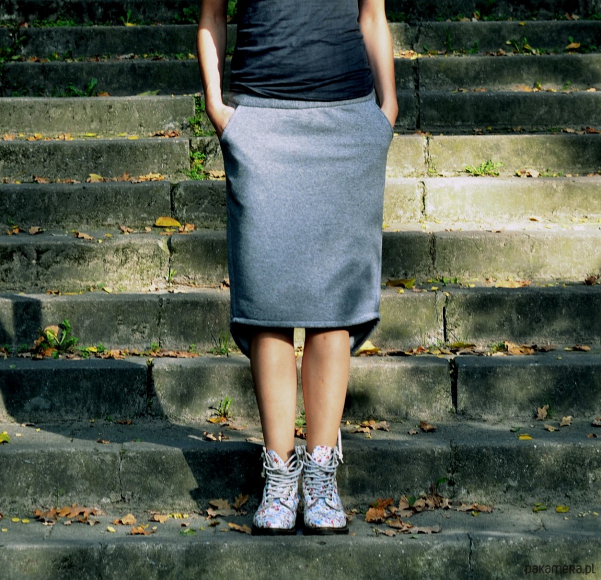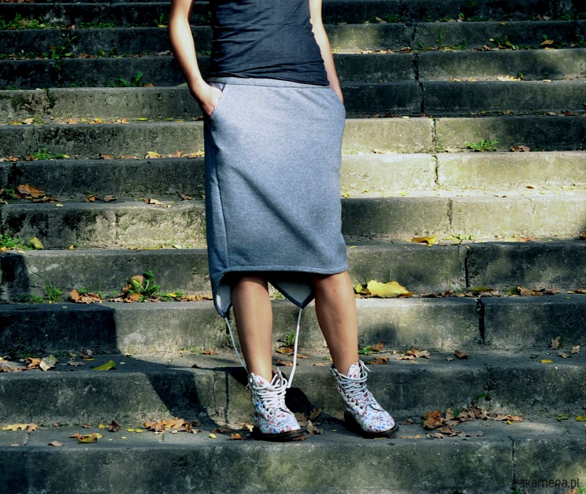 poręczne kieszenie, a dół można ściągnąć wg. uznania bawełnianymi troczkami.
