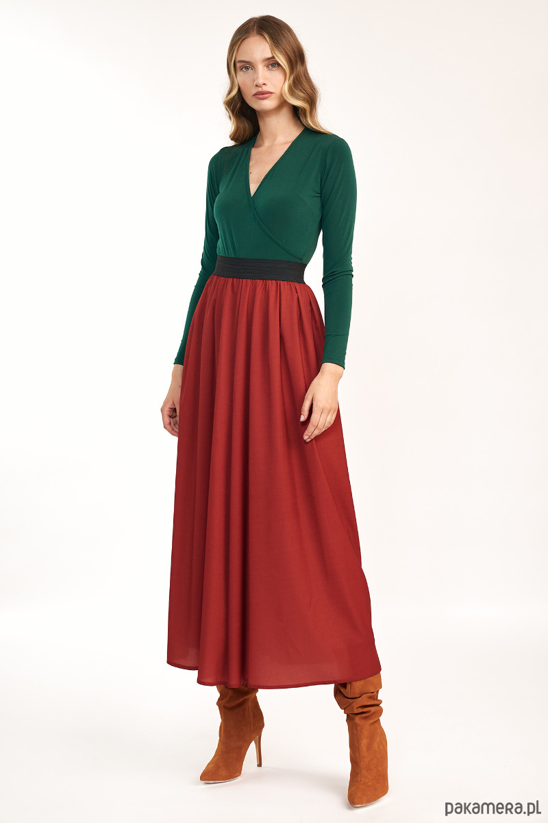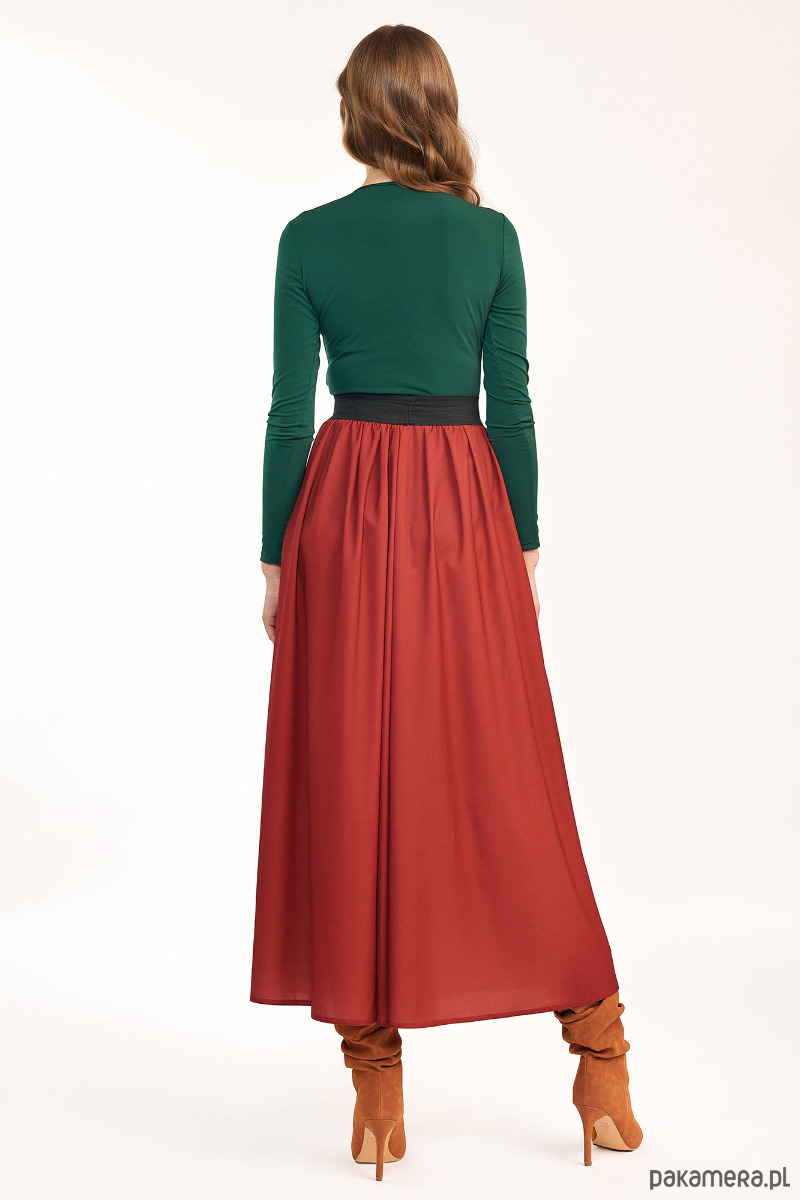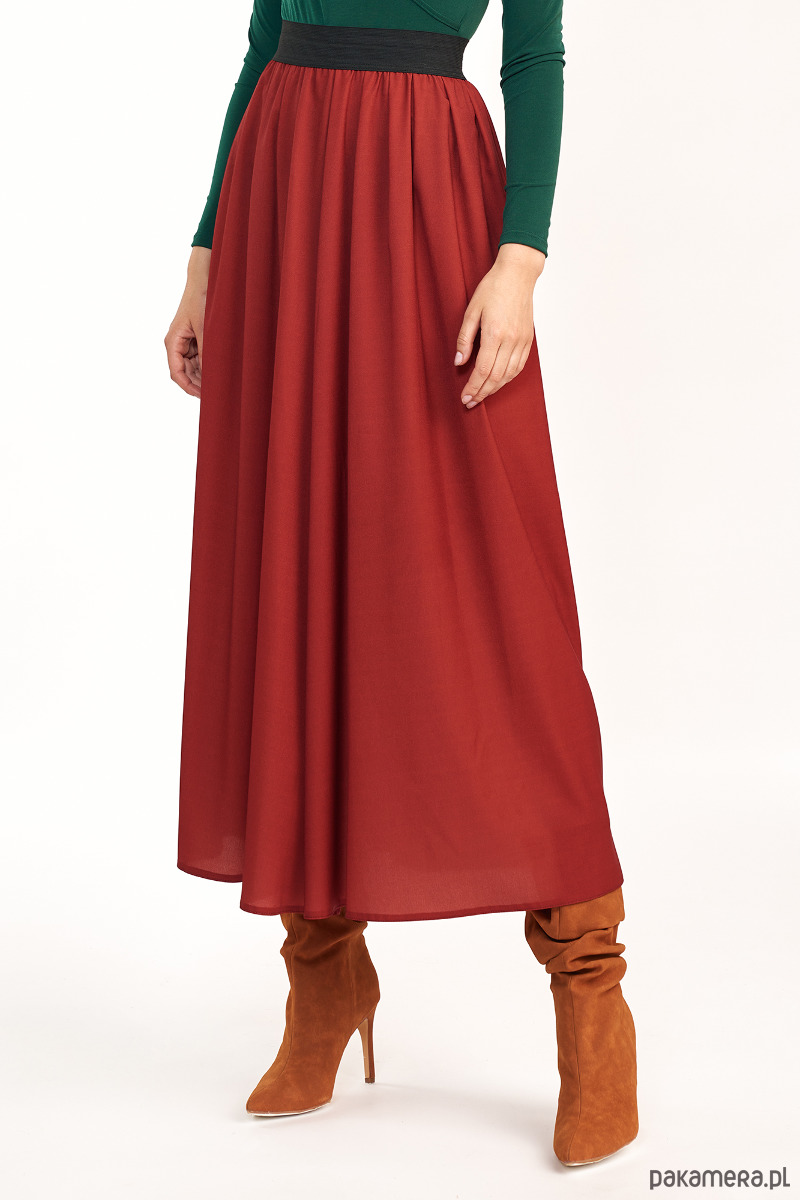 Marszczona spódnica maxi z elastycznym pasem na gumce to idealny wybór na każdą okazję. Możesz ją nosić w parze z kozakami, szpilkami i sneakersami. Wewnątrz spódnicy znajduje się gładka podszewka.