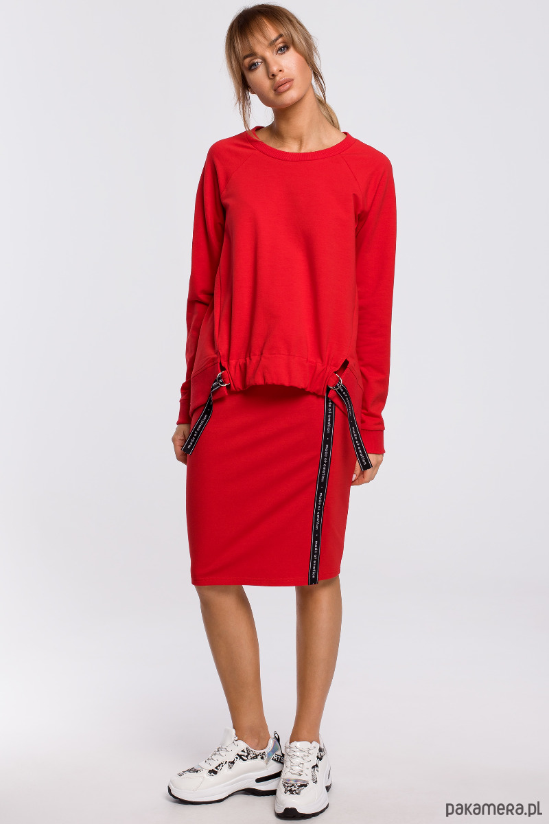 Spódnica o ołówkowym kroju w sportowej odsłonie - uszyta z dzianiny dresowej, elastyczna i komfortowa, z modnym lampasem z napisami i lekkim rozcięciem na udzie.