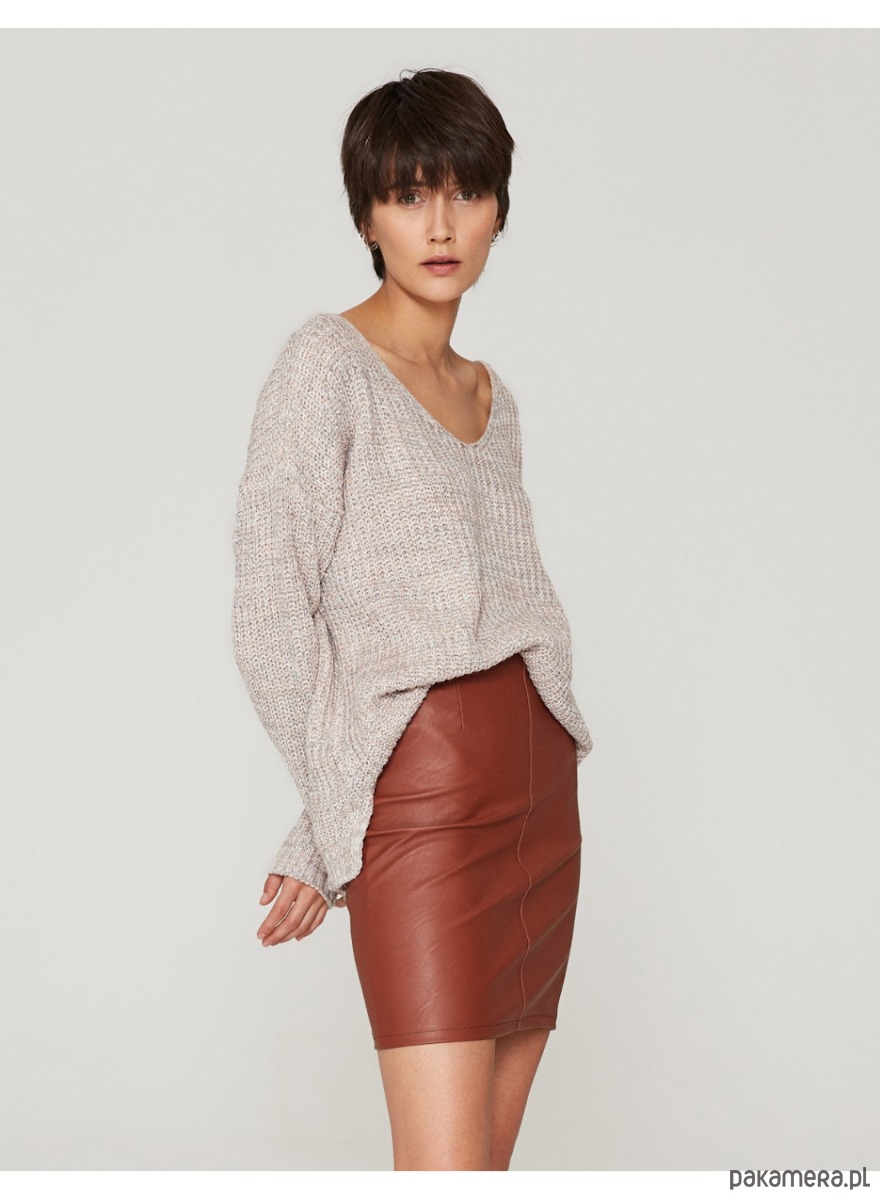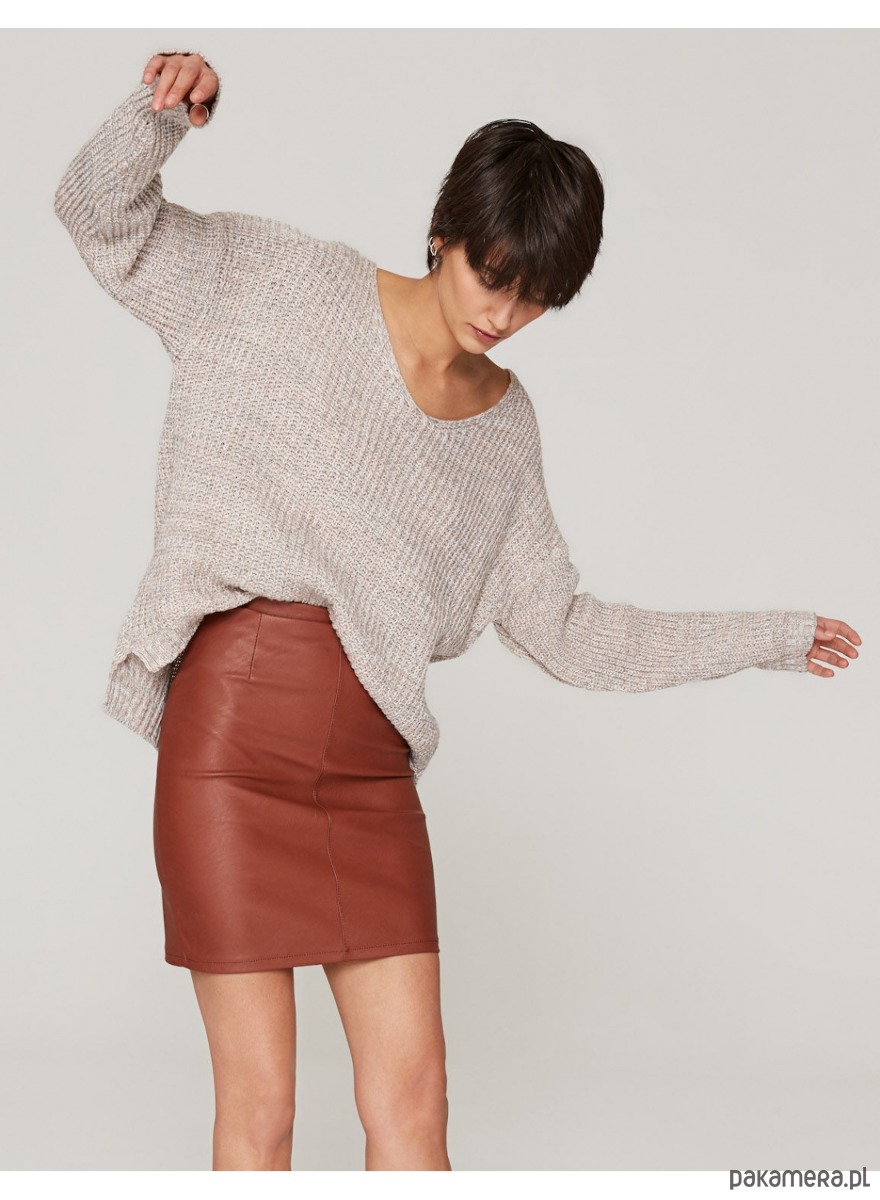Krótka, dopasowująca się do sylwetki spódnica w cynamonowym kolorze uszyta z elastycznej skóry ekologicznej, będzie stanowiła idealną podstawę wielu stylizacji. Ołówkowy krój z podkreśloną talią sprawdzi się w zestawach z klasycznymi tshirtami i koszulami jak i oversizowymi górami gwarantując wygodę przez cały dzień.