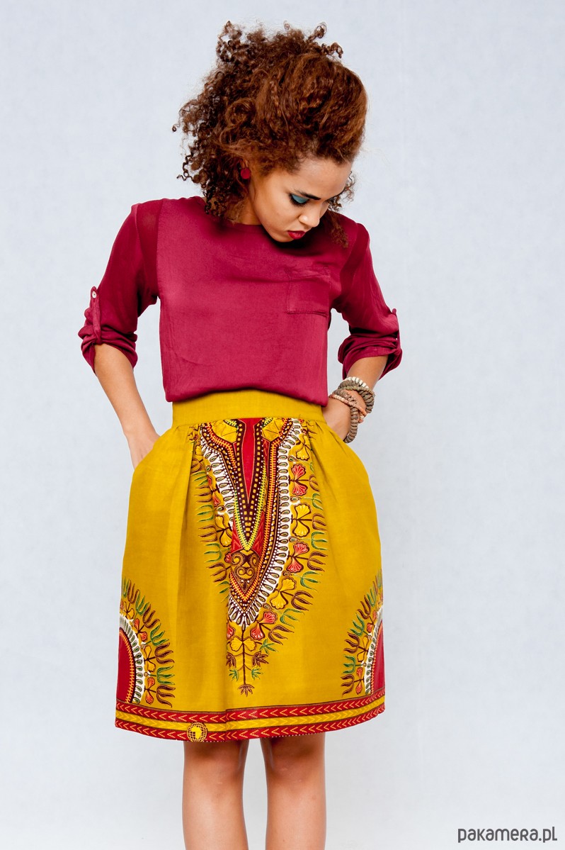 Addis Abeba - po amharsku አዲስ አበባ, „Nowy Kwiat” W naszej afrykańskiej kolekcji znajdziecie materiały farbowane woskiem oraz technikami tie die, które w Afryce funkcjonują pod ogólna nazwą “batik”. Materiały przywiozłam osobiście ze swojej podróży po Gambii, która zainspirowała mnie do stworzenia kolekcji łączącej w sobie afrykański deseń i europejski krój. Ubrania same w sobie sprawdzą się zarówno na mniejsze jak i większe okazje, wprowadzając egzotyczny klimat. Akcesoria będą idealnym uzupełnieniem do prostego, codziennego stroju. Wymiary: 40 cm X 2 szerokość pas 56 cm długość całkowita Wykorzystane materiały 100% bawełna