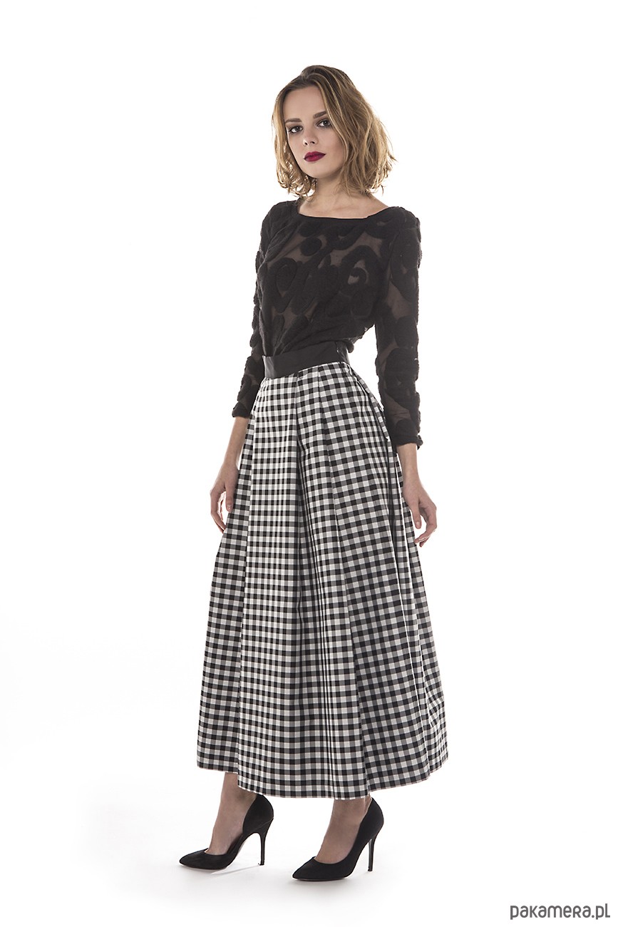 Spódnica w krateczkę,zapinana na zamek w długości 3/4.