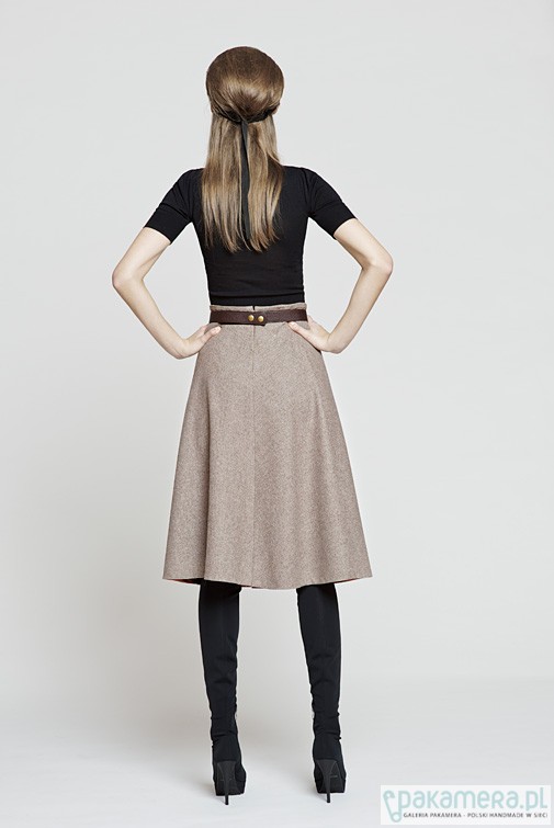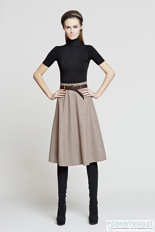 Wełniana spódnica z 1/2 koła na podszewce wiskozowej . Długość: 70 cm Kolor: beż w melanżu Skład : 60% wełna 40 % akryl. Wykonana z wełny pierwszego gatunku . Nie gniecie się . Zalecane czyszczenie chemiczne . Z czym nosić : Nieco nonszalancji doda jej wełniany puszysty , miękki sweter ,który możesz z jednej strony wpuścić za pas , a z drugie strony pozwolić mu swobodnie zwisać , dodaj do tego byty na platformie lub mokasyny oraz dla kontrastu dużą kopertową torbę . Ten model spódnicy sprawdza się także idealnie w połączeniu z koszulami, dopasowanymi golfami i marynarkami czy krótkimi kurteczkami . Modelka na zdjęciu ma 178 cm wzrostu i prezentuje spódnicę w Roz. 34