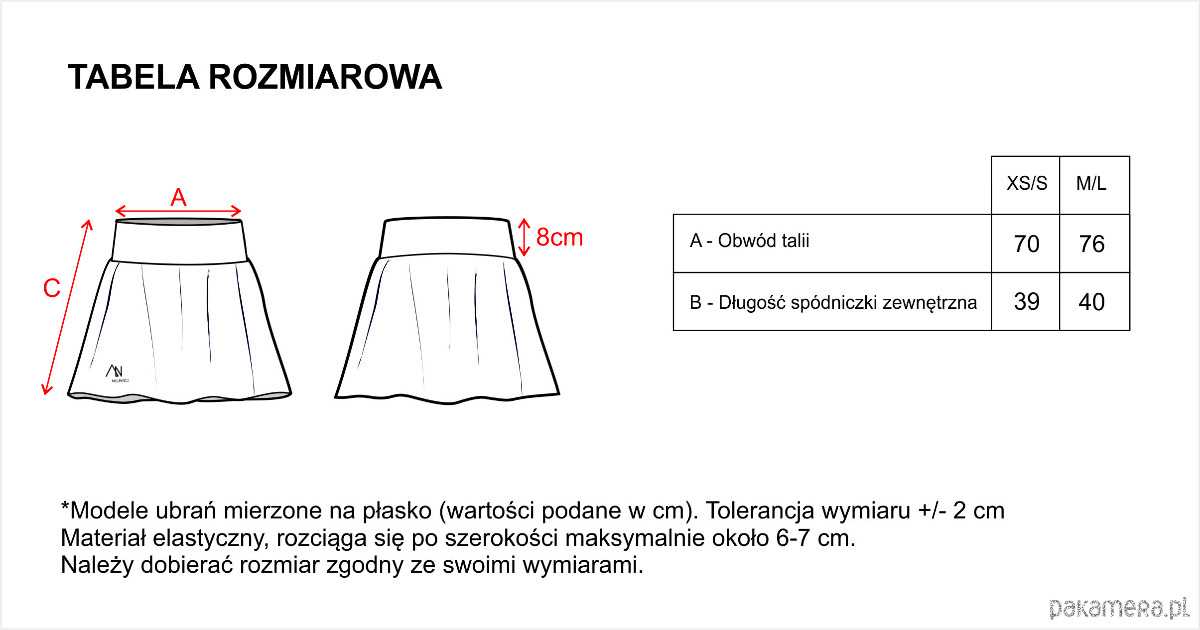 Spódniczka ma możliwość wszycia szortów lub kolarek z pojemnymi kieszeniami (tak jak na innych aukcjach) po wcześniejszym kontakcie i ustaleniu szczegółów.