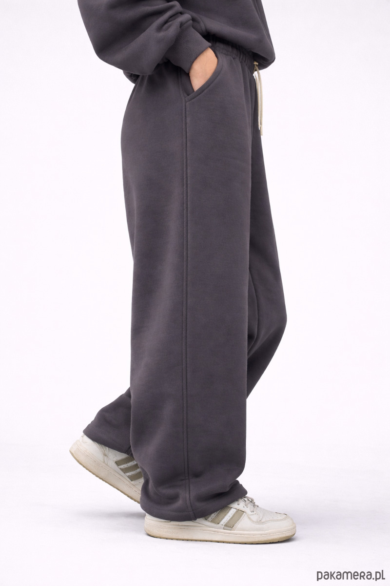 Spodnie dresowe uszyte z wysokiej jakości materiału o gramaturze 330 GSM. Materiał jest miękki, przyjemny w dotyku i od środka drapany („miś”), co zapewnia komfort i ciepło. Całość została uszyta w małej polskiej szwalni z dbałością o detale. To idealne spodnie na co dzień – wygodne, stylowe i praktyczne. Krój baggy – szerokie i komfortowe, z regulacją nogawek na stoper. Dzięki temu możesz nosić je w dwóch wariantach: szerokim lub zwężonym.