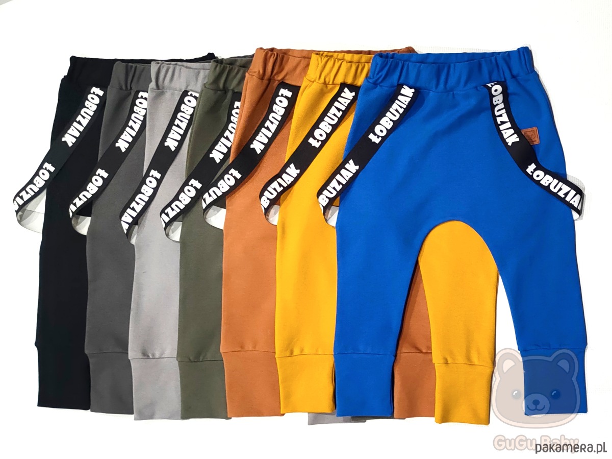 Komfortowe spodnie baggy dla dzieci. Luźny krój zapewni dziecku komfort, wygodę i nieograniczoną swobodę ruchów. Taki model to doskonały pomysł na codzienną stylizację. Spodnie można łączyć z kolorowymi t-shirtami czy bluzeczkami tworząc dzięki temu wesoły i praktyczny strój na co dzień. Ciekawy wzór oraz szelki "łobuziak" z pewnością spodobają się każdemu modnemu dziecku.