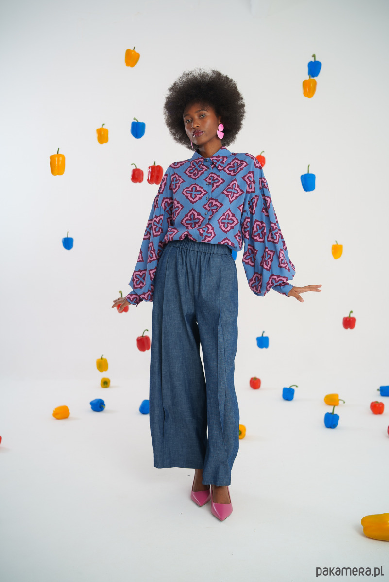 Kolor: W odcieniu granatu, który doskonale komponuje się z różnorodnymi kolorami, idealny do łączenia z jasnymi lub kontrastowymi górnymi elementami.