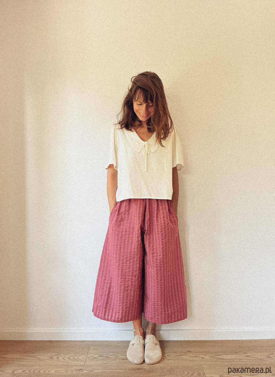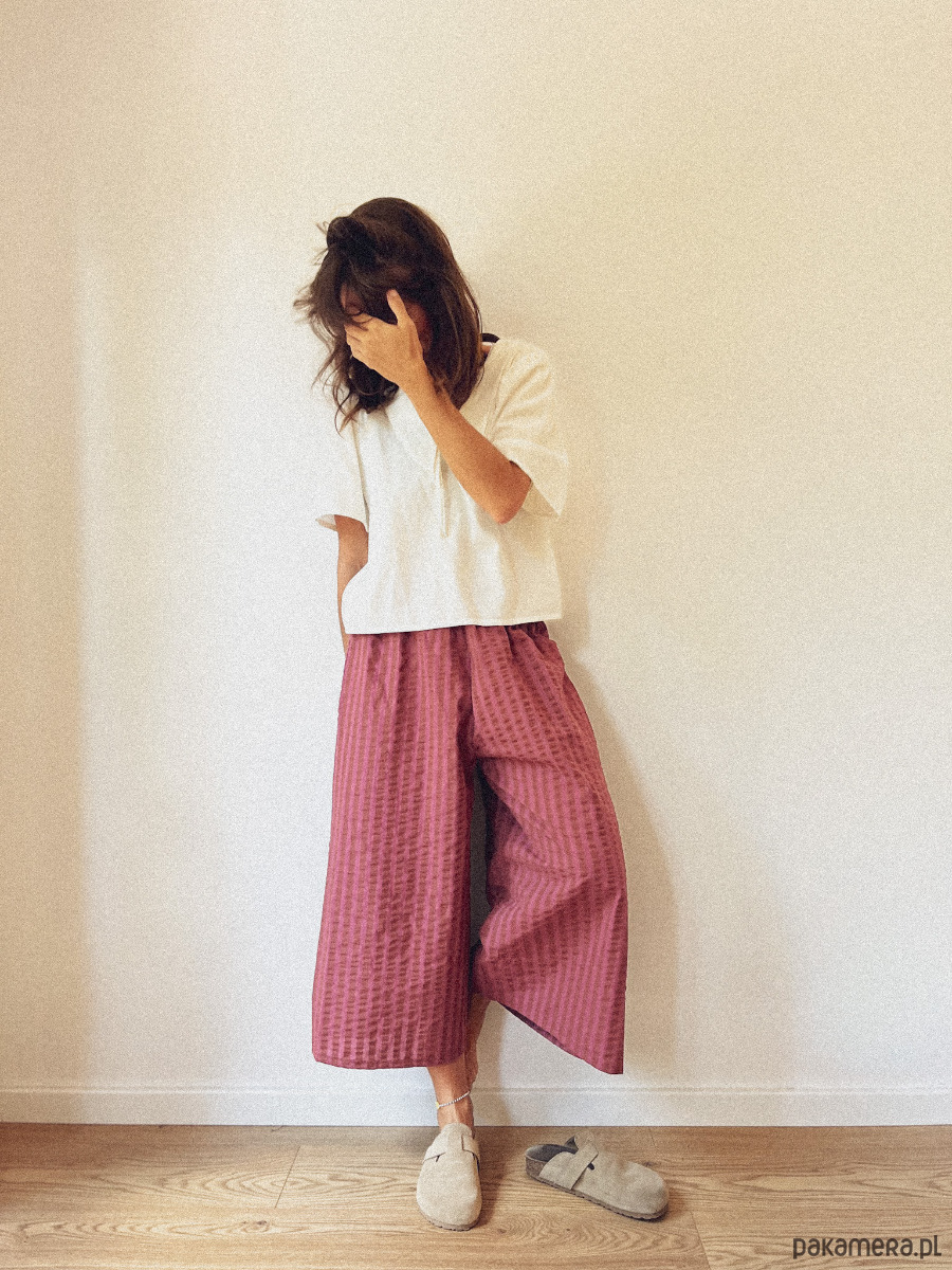 - Typ spodni: culotte, wide leg, boyfriend