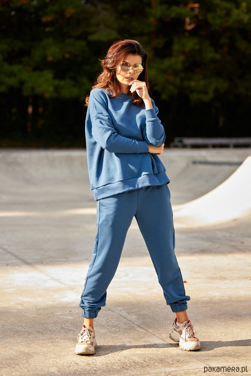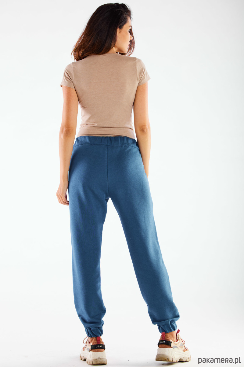 Spodnie wykonane z grubej tkaniny bawełnianej, miłej w dotyku.