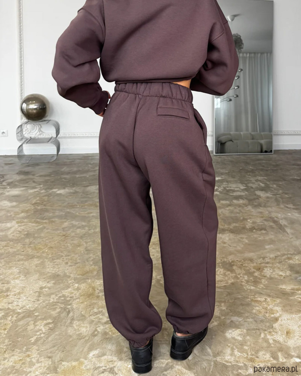 Model został zaprojektowany tak, aby pracować z sylwetką — luźna forma daje swobodę ruchu, a elastyczny pas w talii zapewnia dopasowanie bez uczucia ucisku. To spodnie, które nie narzucają stylu, ale pozwalają go budować — w zależności od tego, z czym je zestawisz.