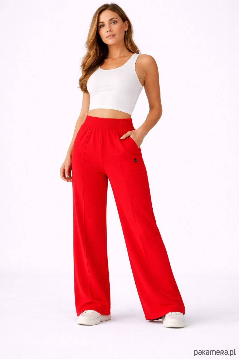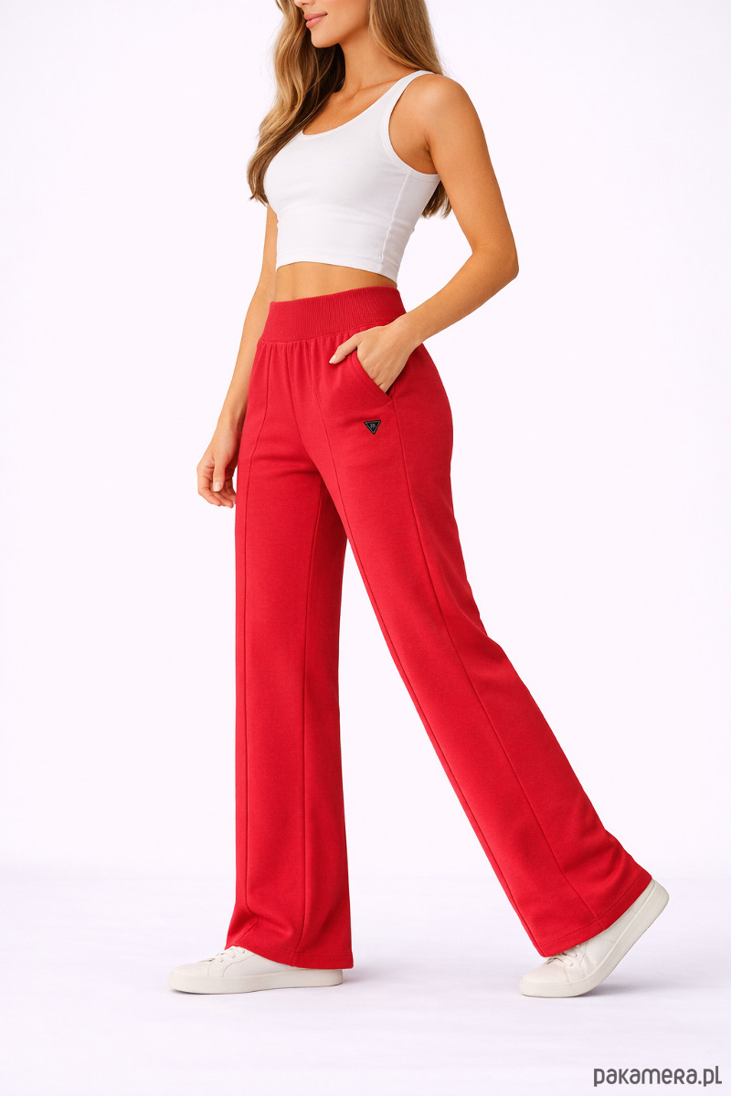 Spodnie o luźnym kroju z szeroką nogawką i kantem na całej długości, który nadaje sylwetce bardziej elegancki, wydłużający efekt. To nie są zwykłe dresy — to poziom wyżej 🔥