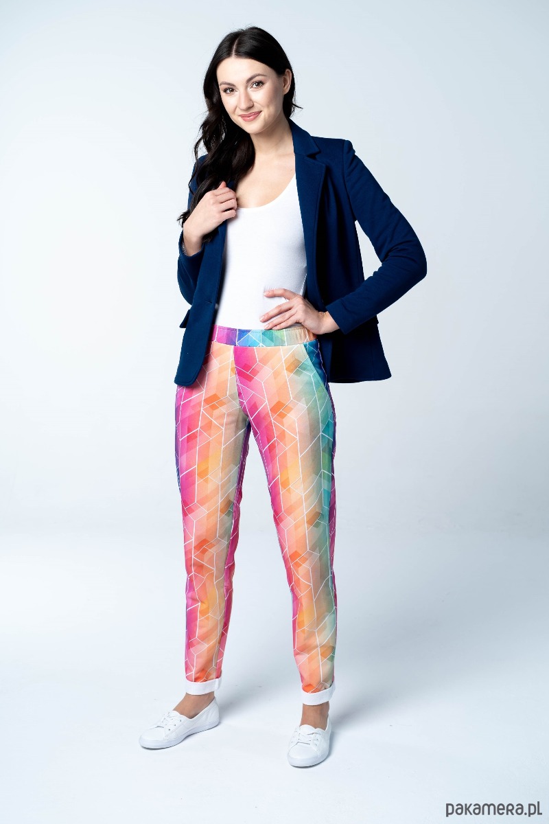 Spodnie damskie Vibrant Rainbow proste wielokolorowe z dresówki