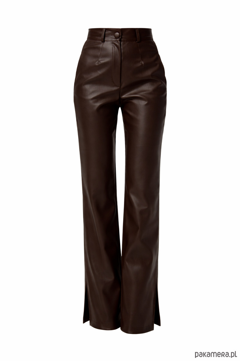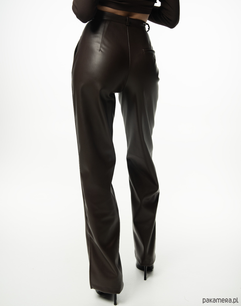 Spodnie damskie z eko-skóry Brązowy Szyk