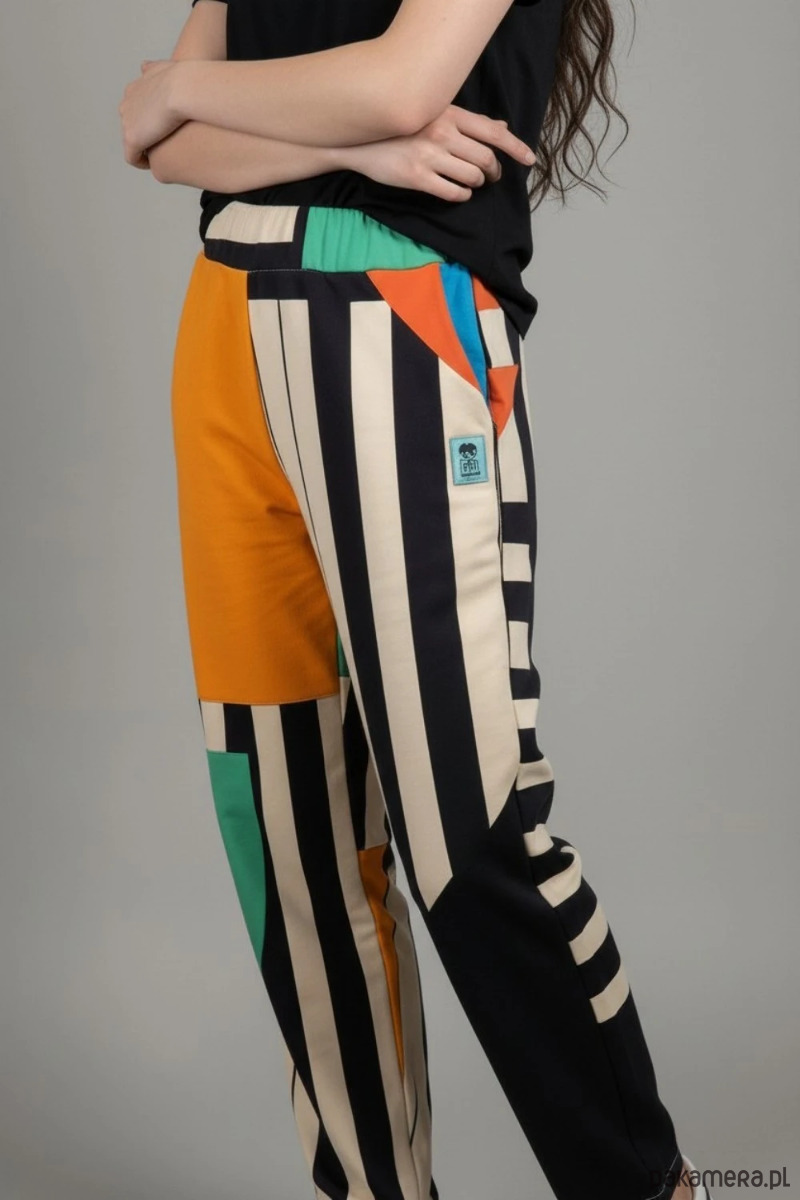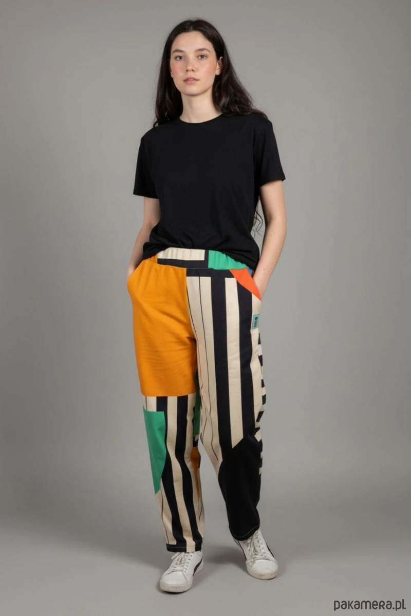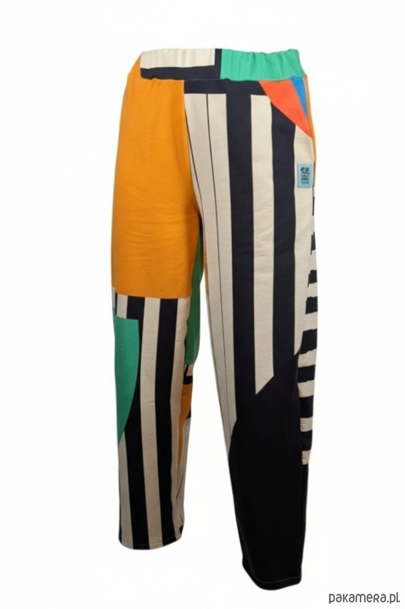 Wyraziste spodnie dresowe Ahimsa z energetycznym, kolorowym wzorem, które przyciągają uwagę i nadają stylizacji artystycznego charakteru. To model dla osób, które cenią wygodę, oryginalne printy i modę z wyrazem.
