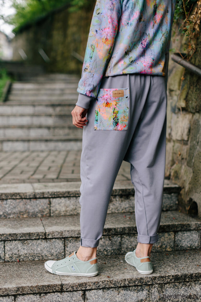 Spodnie Tooti uszyte są w ekstremalnie wygodnym kroju z obniżonym krokiem. Czy jest coś wygodniejszego niż szarawary?