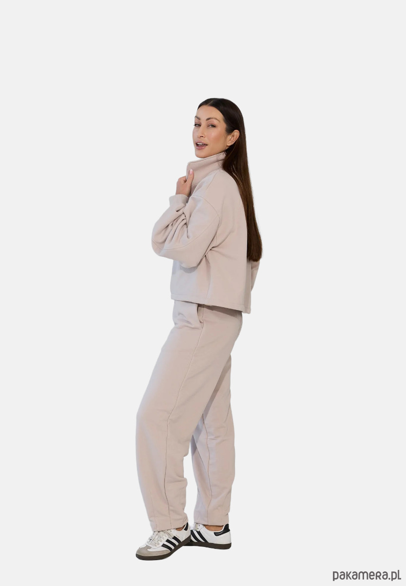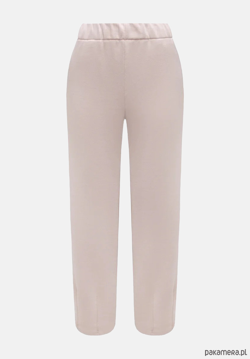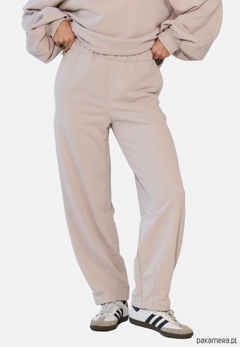 Spodnie Monica to klasyka wygody w dopracowanym wydaniu. Mają luźny, miękko opadający fason typu baggy i elastyczną gumę w pasie, dzięki czemu idealnie dopasowują się do sylwetki, bez zbędnego opinania. Nogawka jest prosta, nieco szersza w udach i zwężana na dole, co nadaje spodniom nowoczesny, swobodny i miejski charakter.