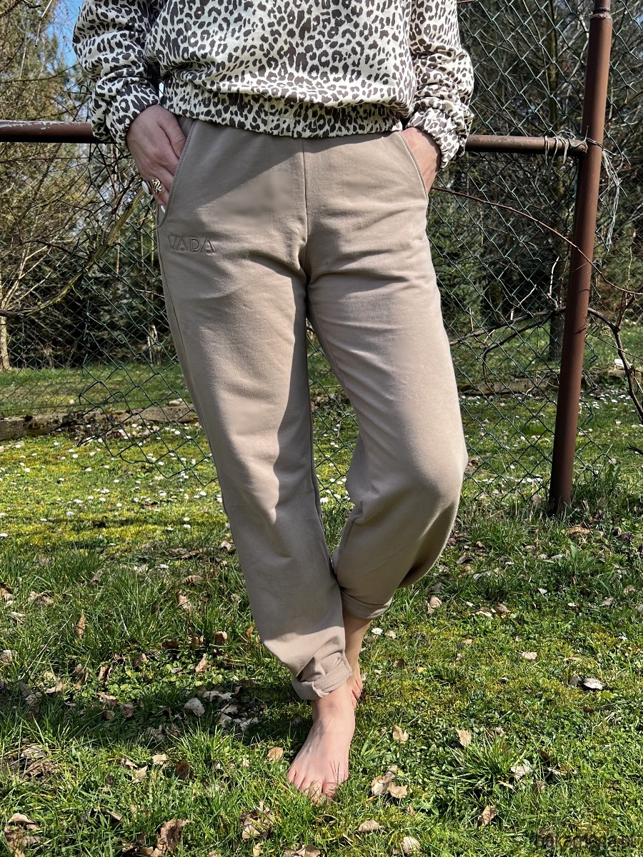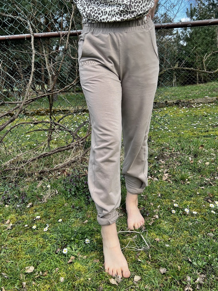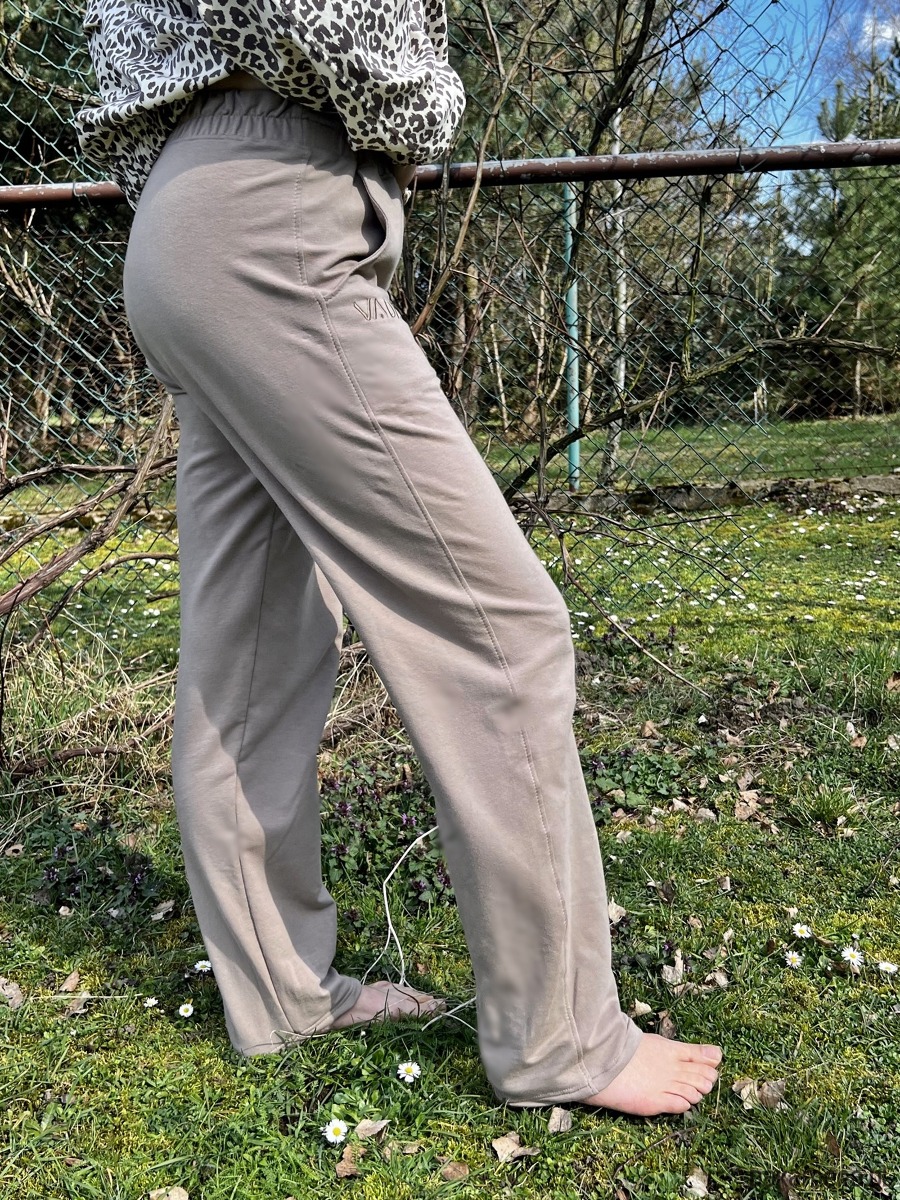 Lekkie miękkie spodnie dresowe damskie z długą prostą nogawką. Połączenie wygody oraz funkcjonalności. Kolor chłodnego ciemnego beżu, zapewnia neutralność w doborze stylizacji. Spodnie mogą być noszone na co dzień z bluzą , lub z elegancką górą dla przełamania sportowego stylu. Elastyczna guma w pasie zapewnia dobre dopasowanie jak i wygodę noszenia, niezależnie od typu sylwetki.