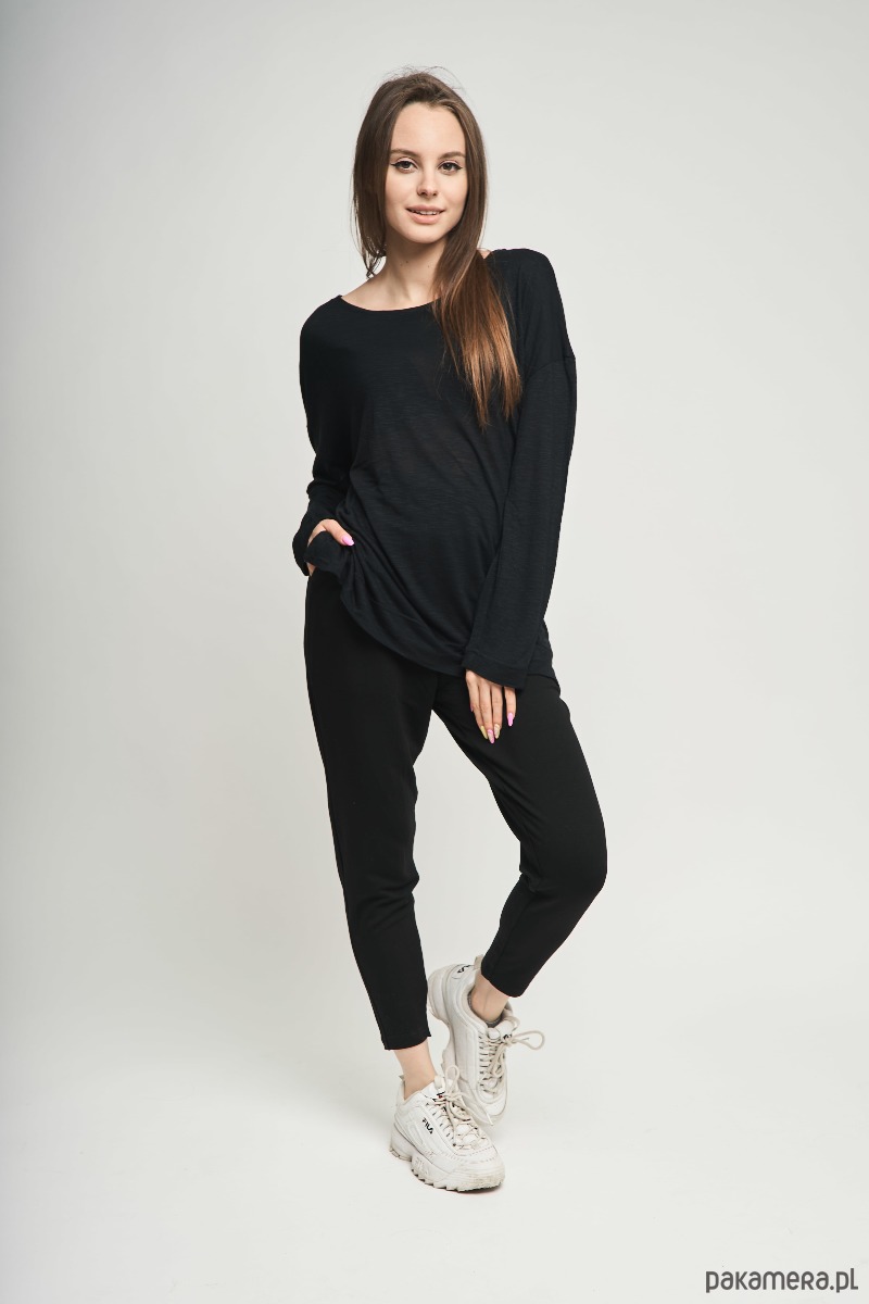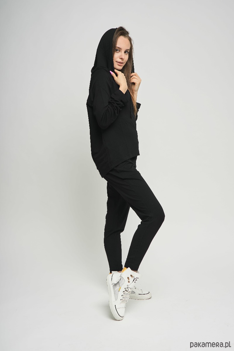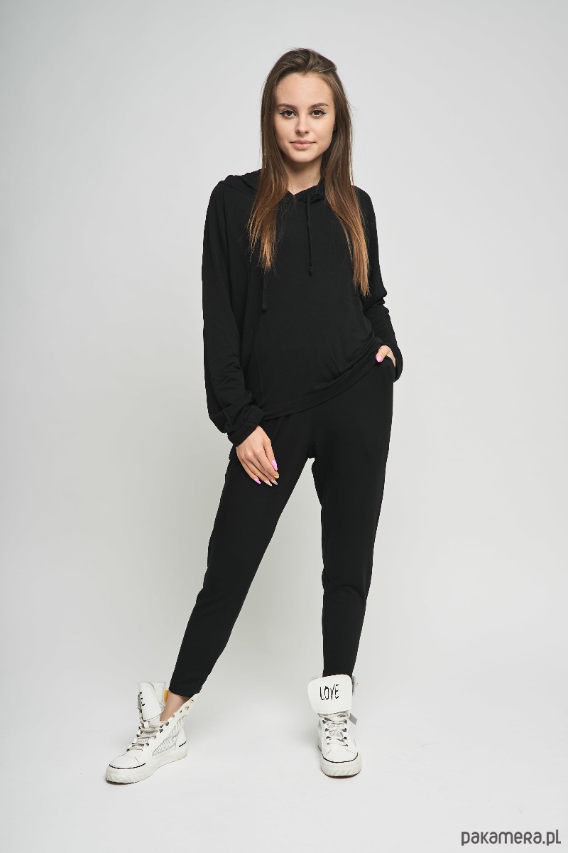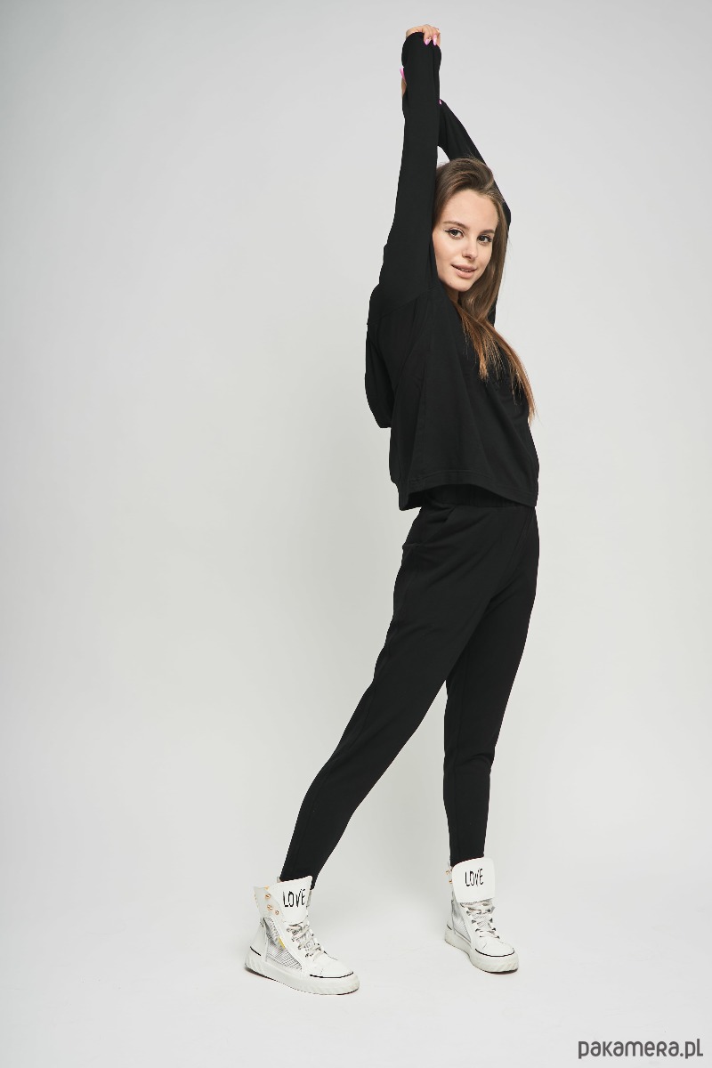 Spodnie są lekko zwężane ku dołowi, dzięki czemu są obszerniejsze na górze i bardziej dopasowane tuż nad kostką. W pasie wszyta jest szeroka ale miękka guma, która dobrze dopasowuje się do ciała, nie zwija się i zapewnia komfort noszenia.