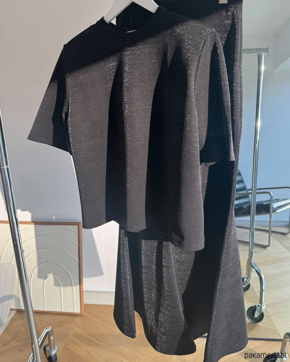 Spodnie Electric Black w błyszczącej odsłonie to nowoczesna interpretacja wieczorowej elegancji z wyraźnym, modowym charakterem. Subtelnie połyskująca dzianina pięknie odbija światło, nadając stylizacji głębi i efektu „wow”, który sprawdza się zarówno po zmroku, jak i w dopracowanych dziennych zestawach.