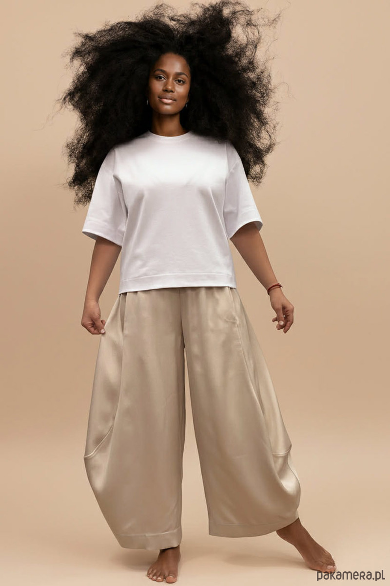 - Krój: luźne, rozszerzane, proste