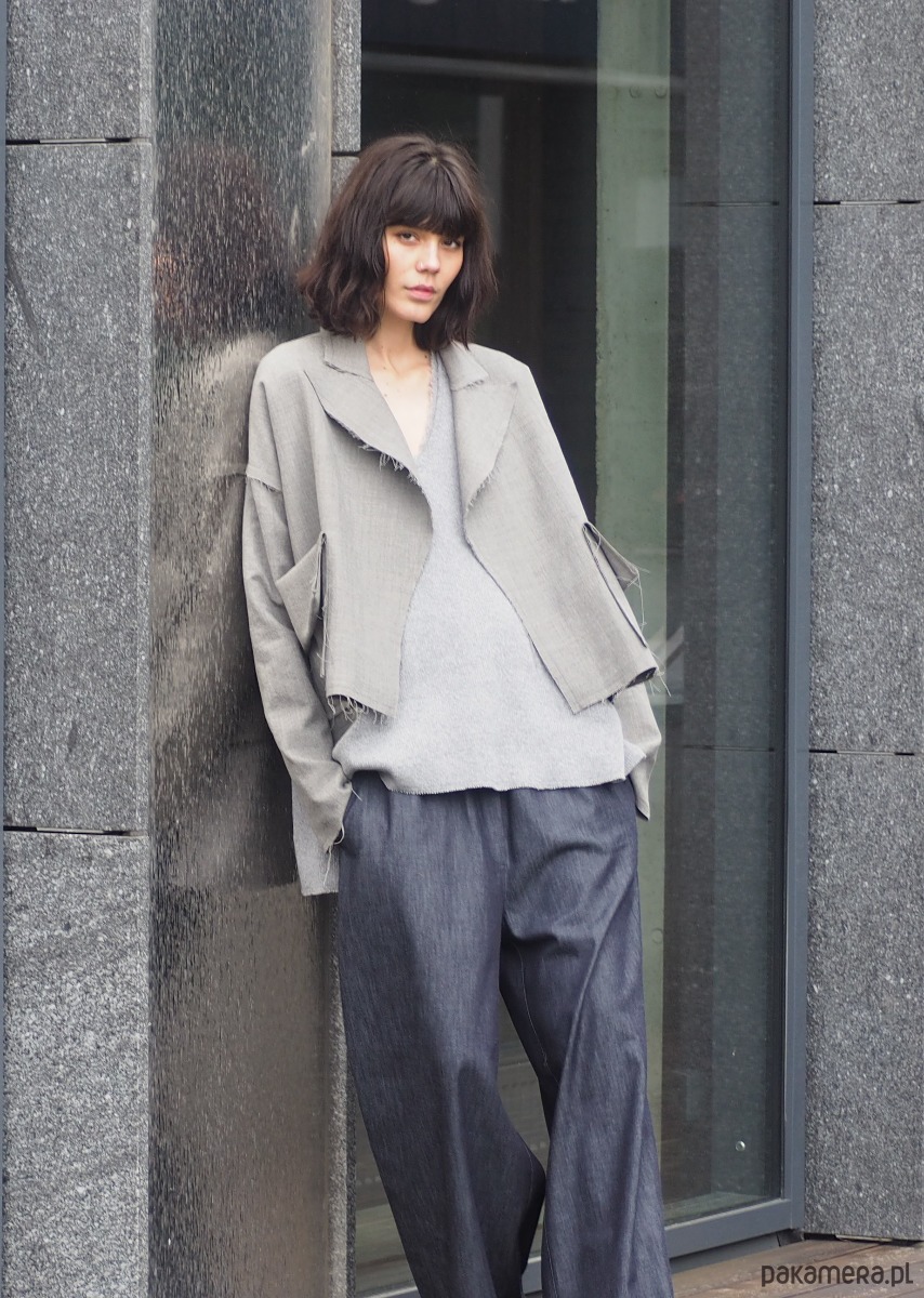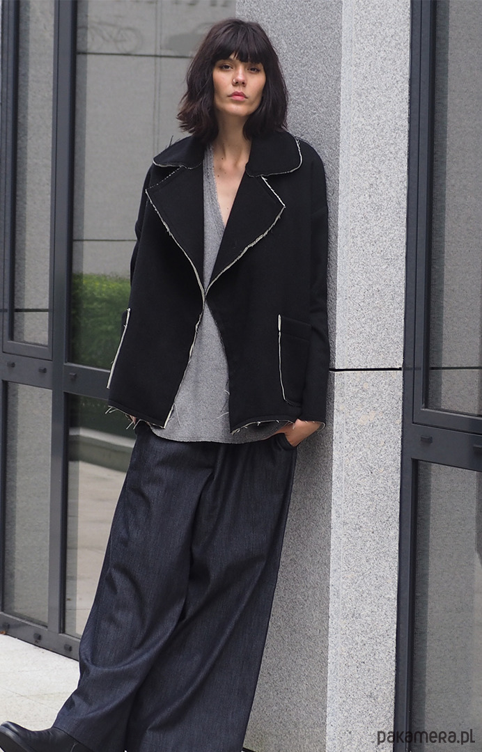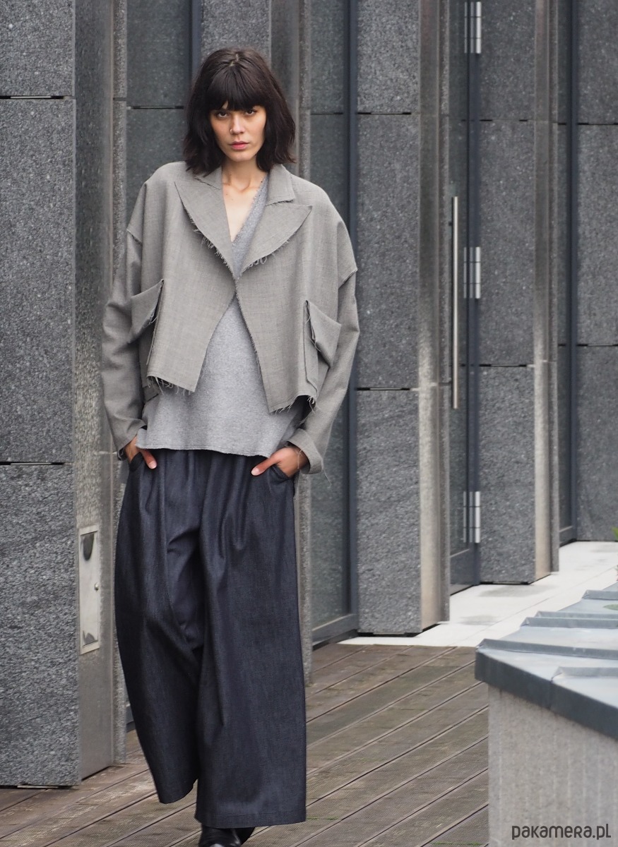 "FORMY I KOLORY" TO OVERSIZOWE SPODNIE USZYTE Z JEANSOWEJ TKANINY BAWEŁNIANEJ W GRANATOWYM KOLORZE. SPODNIE CHARAKTERYZUJE PROSTA, SZEROKA FORMA, W TALII NA GUMIE CO POMAGA DOPASOWAĆ SPODNIE DO SYLWETKI. W SZWACH BOCZNYCH ZNAJDUJĄ SIĘ KIESZENIE.