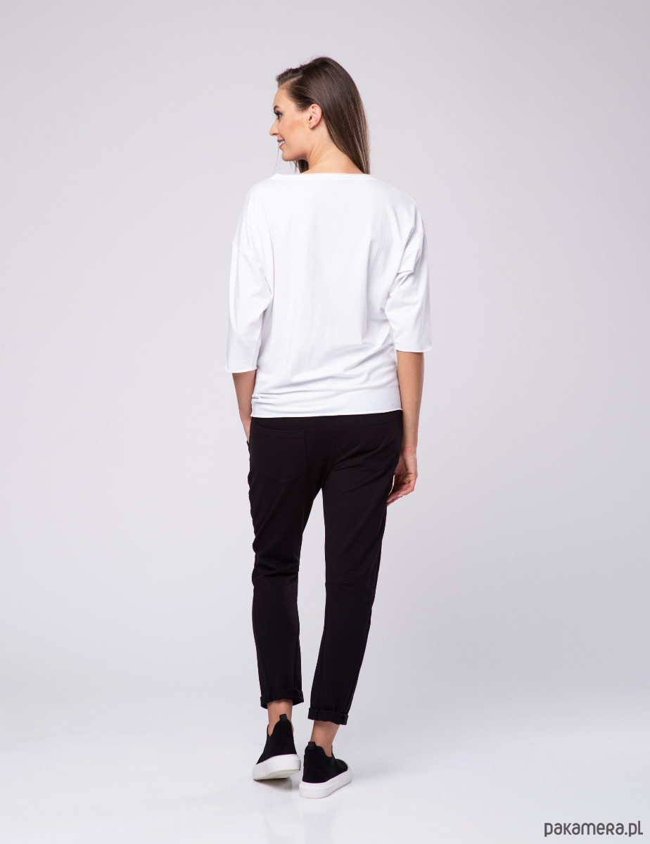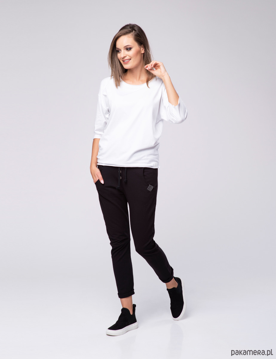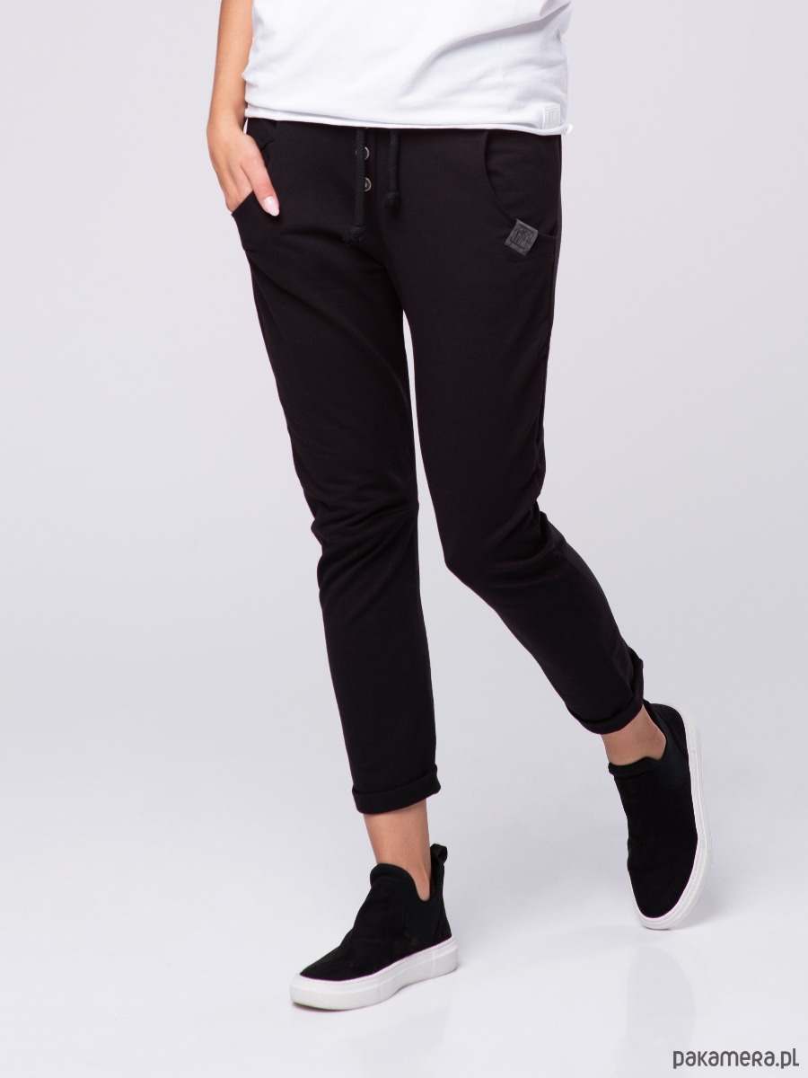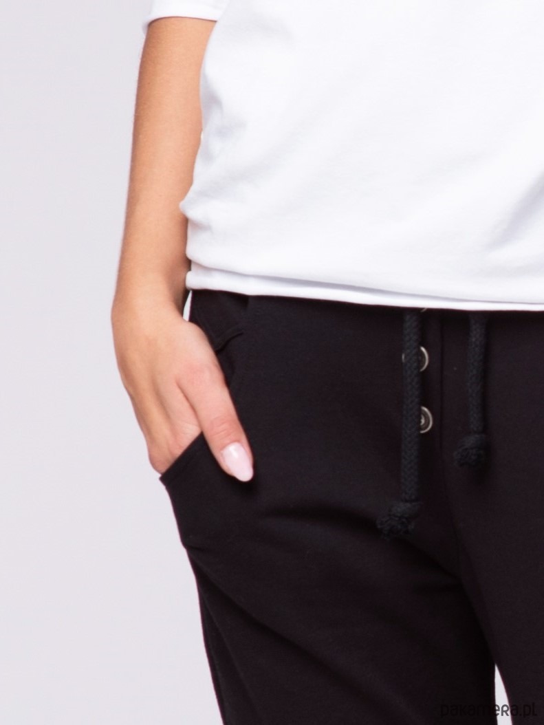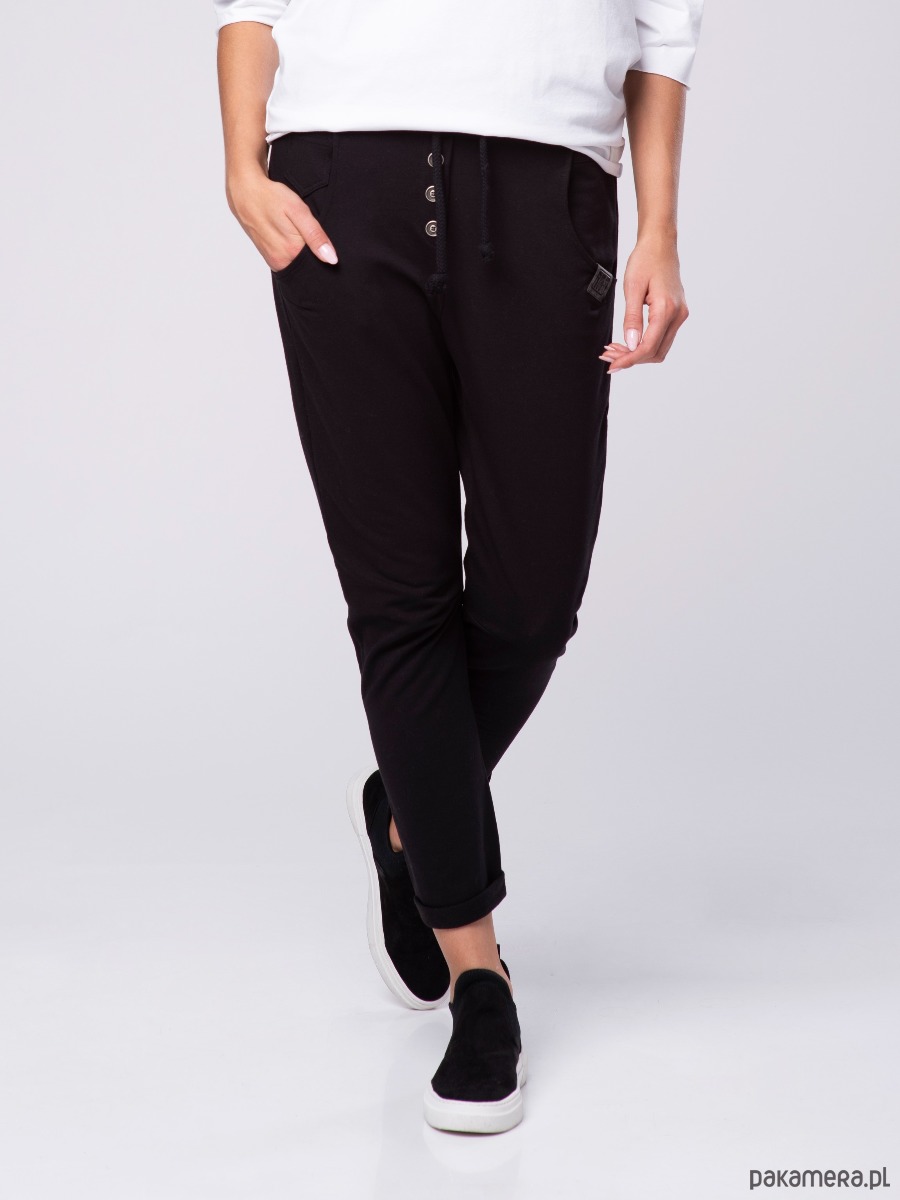 To nasze najwygodniejsze spodnie! To forma spodni która absolutnie wysmukla i ustawia proporcje sylwetki. Szwy boczne tak zostały skonstruowane, by wyszczuplić uda. Dodatkowo nisko osadzone kieszenie plus mini-kieszonka jak w jeansach. Są świetne, wygodne jak dresy, a wyglądają jak dobre cygaretki. Mają ściągacz w pasie przez co z łatwością znoszą wahania wagi i dysproporcje w rozmiarze. Troczkiem z bawełnianego sznura wyregulujesz talię. Dodatkowo są ozdobione guzikami metalowymi co imituje zapięcie z przodu.Możesz je nosić nisko na biodrach lub wyżej w talii, tak jak lubisz.Zwężane nogawki zawiniesz w mankiet, zakładasz trampki i biegniesz w miasto.Świetnie połączysz z T-shirtem czy długą koszulą.Są wykonane z elastycznej bawełny, więc możliwe , że zechcesz mieć w szafie obydwa kolory.
