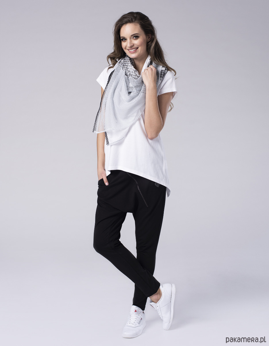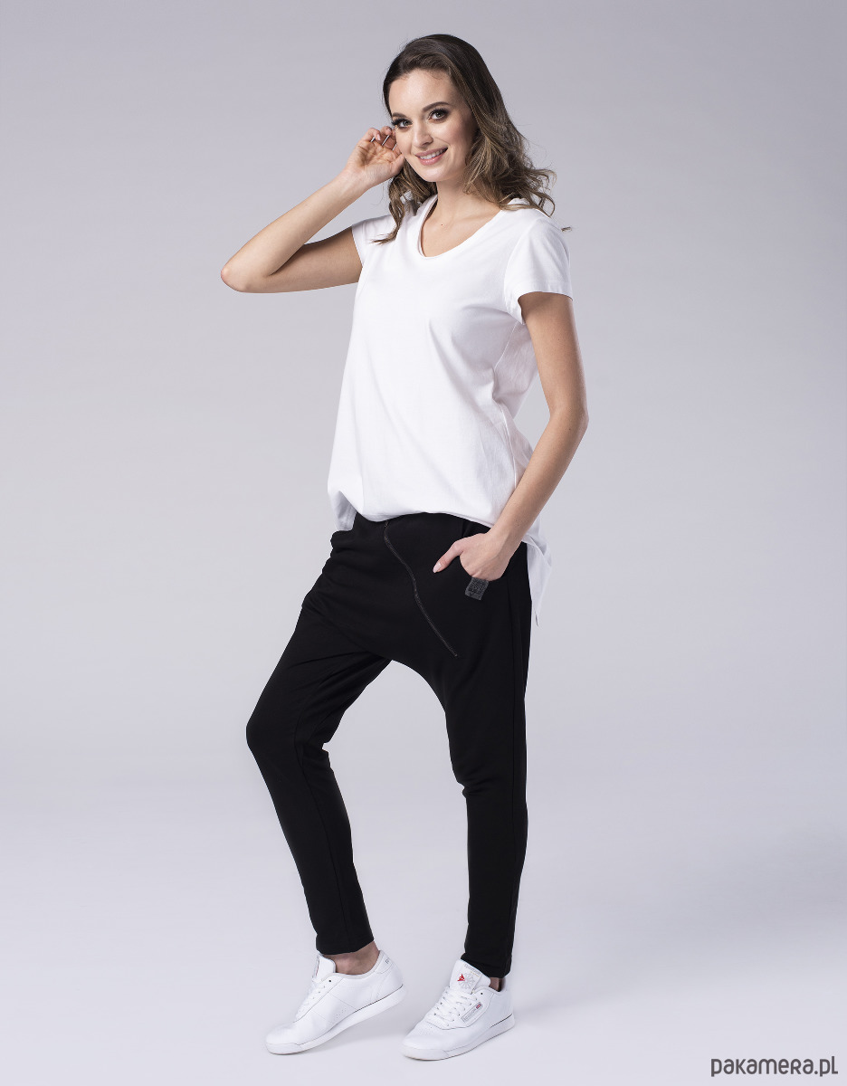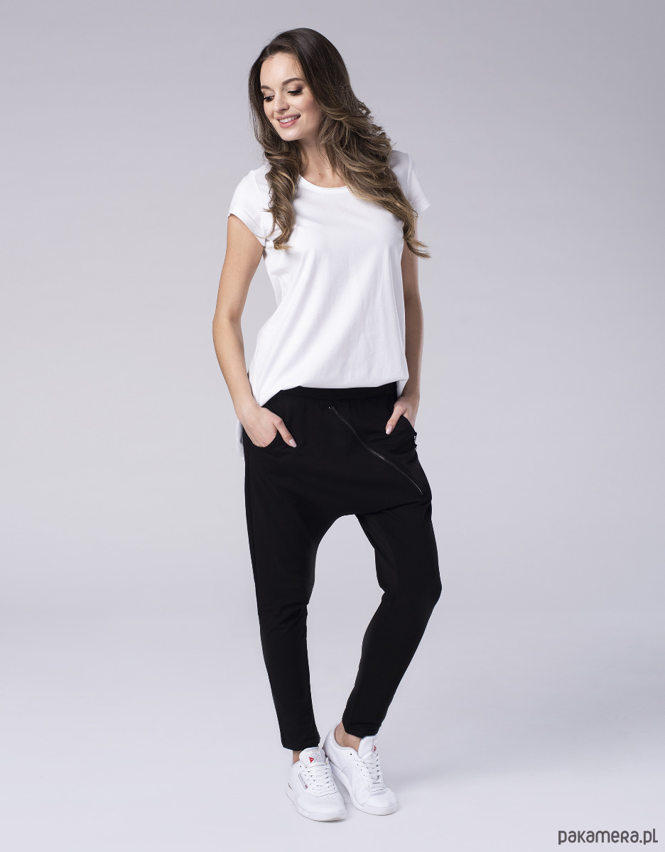 Luźna góra i zwężane nogawki optycznie wysmuklą uda i naprawdę świetnie wydłużą i wyszczuplą całe nogi.Dodałyśmy akcent zamek błyskawiczny asymetryczny, który nada oryginalny wygląd. Z łatwością połączysz je z Tshirtem , koszulą, bluzą, zabierzesz w podróż i na spacer, wszędzie:)