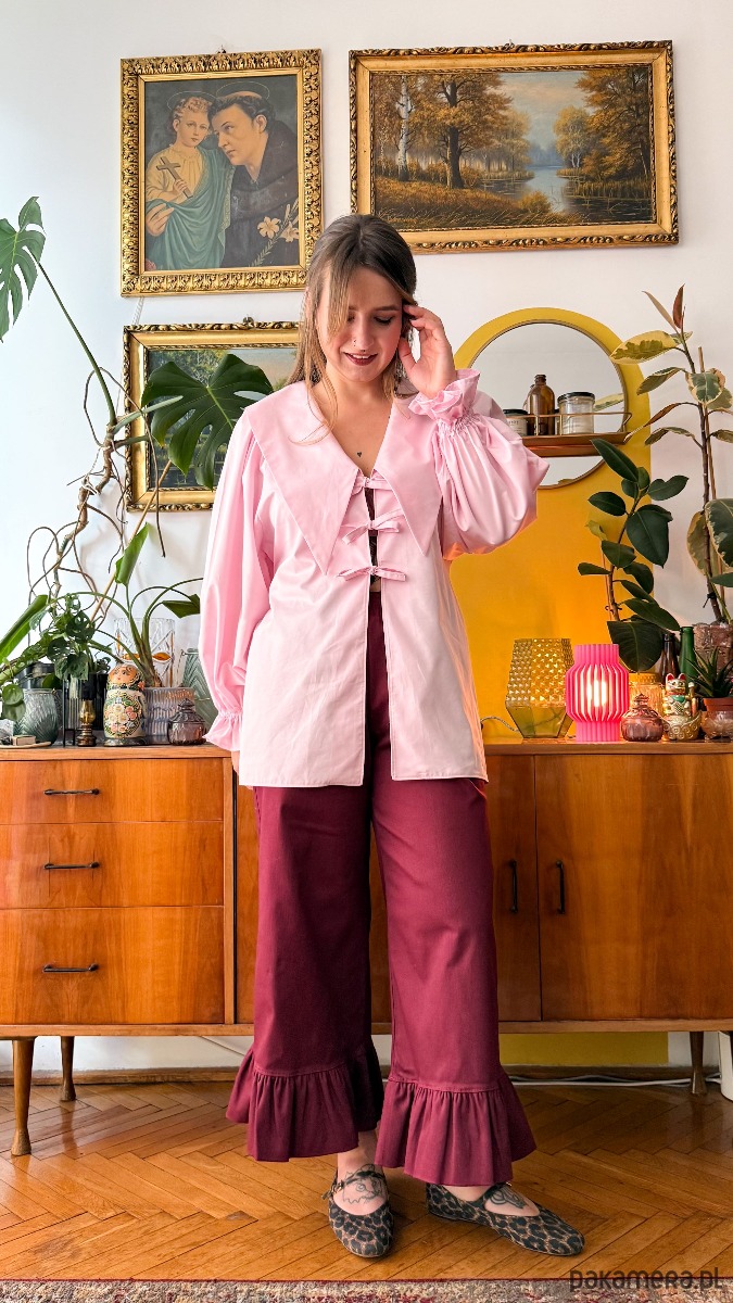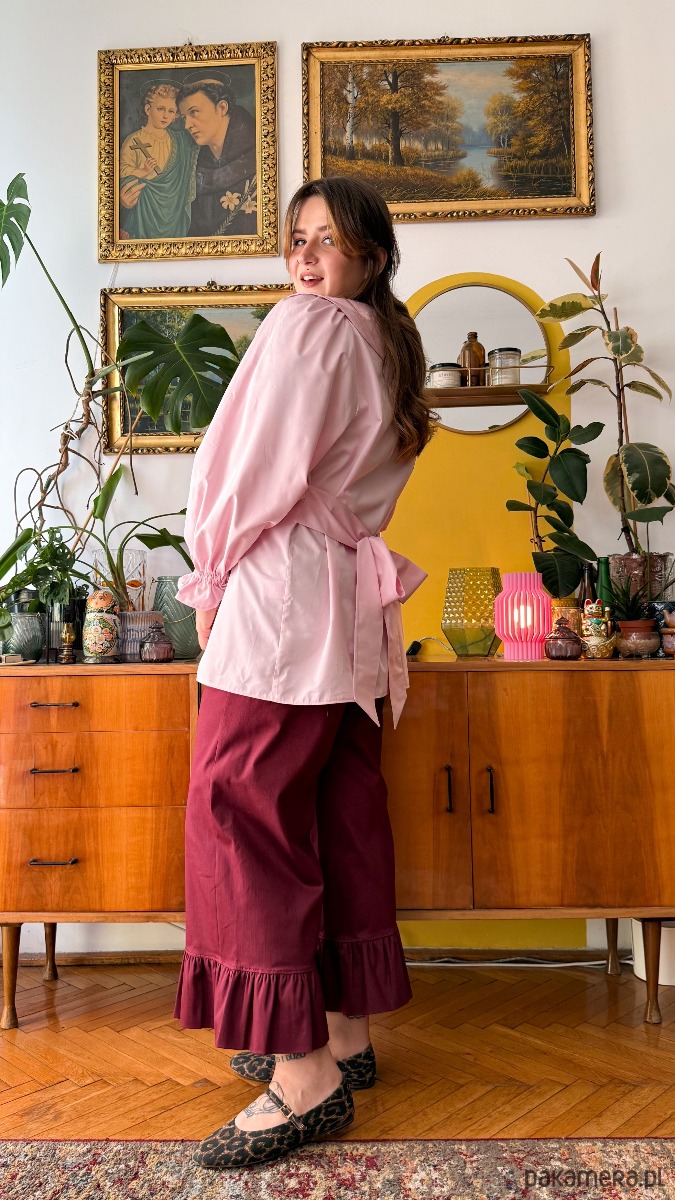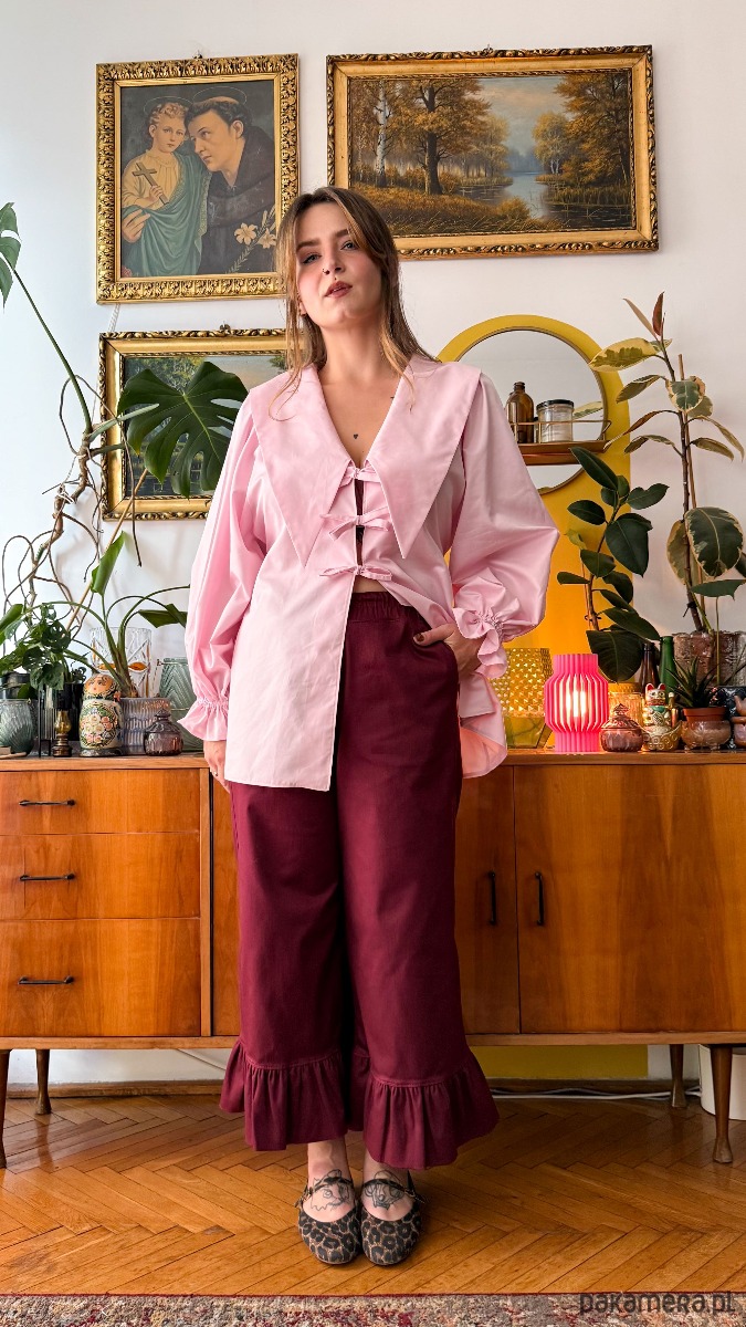 Po drugie modny, ale i ponadczasowy krój. Ich luźna forma nie krępuje ruchów i zapewnia mega wygodę podczas noszenia. Góra na gumce. W bocznych szwach ukryte kieszenie. Długość nogawki 7/8, dodatkowo zakończone są szerokimi falbankami-no czy to nie urocze?