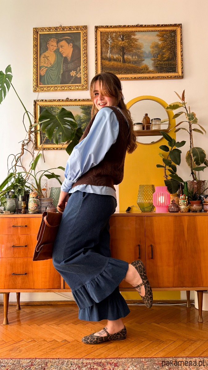 Po drugie modny, ale i ponadczasowy krój. Ich luźna forma nie krępuje ruchów i zapewnia mega wygodę podczas noszenia. Góra na gumce. W bocznych szwach ukryte kieszenie. Długość nogawki 7/8, dodatkowo zakończone są szerokimi falbankami-no czy to nie urocze?