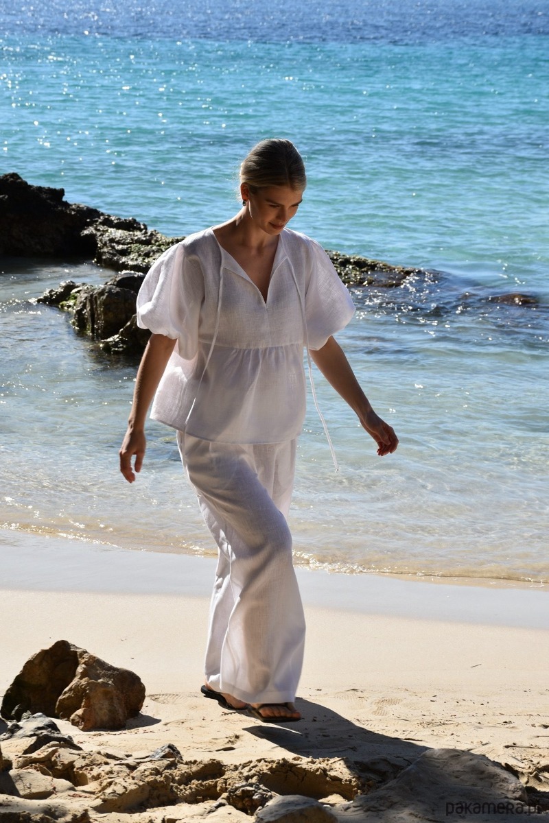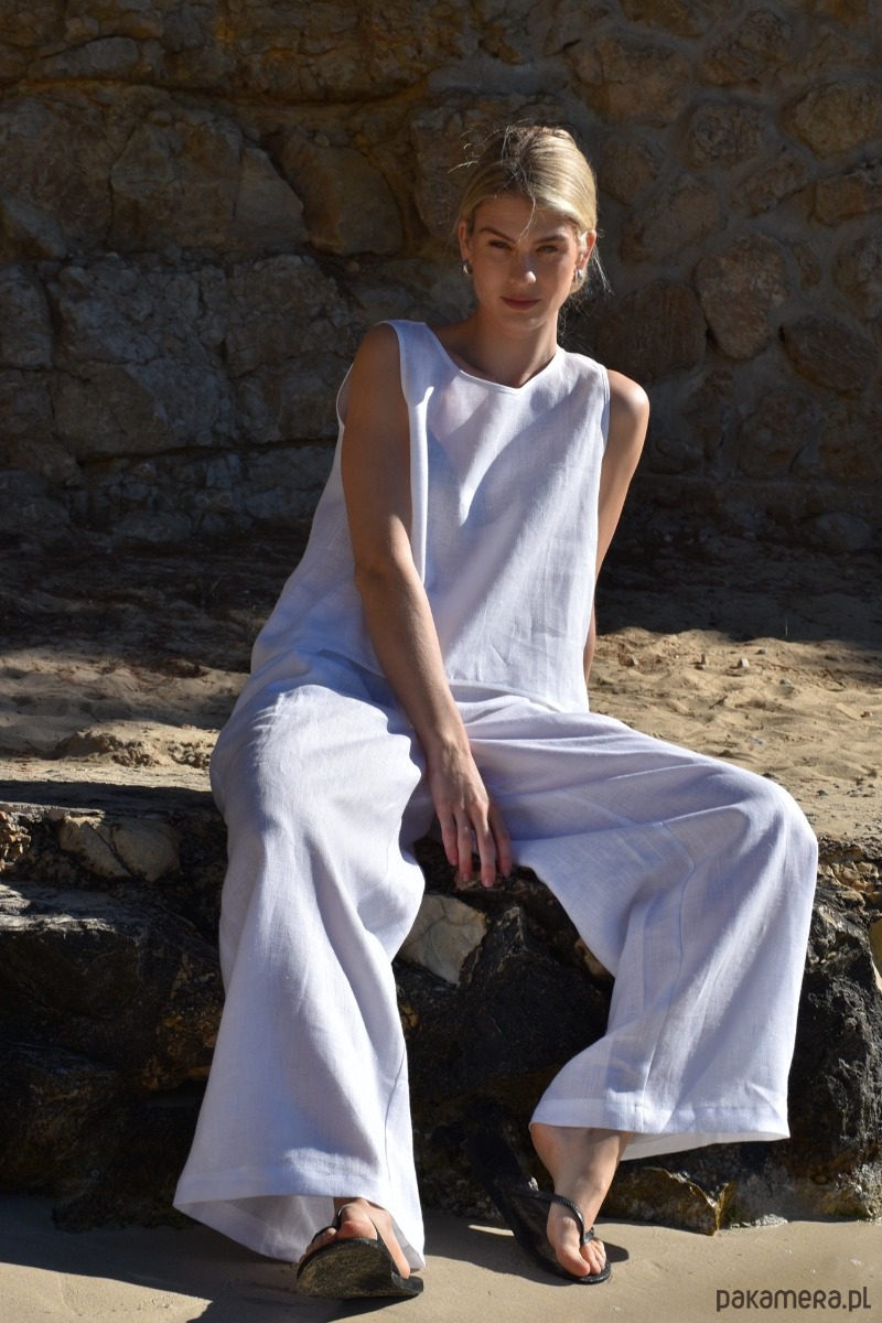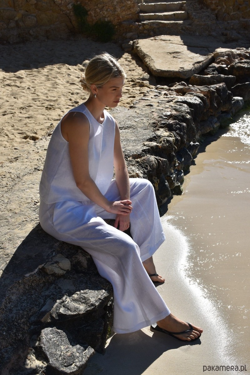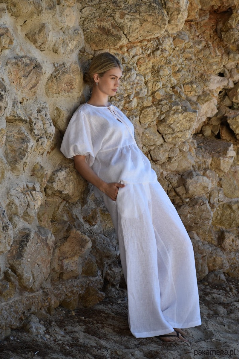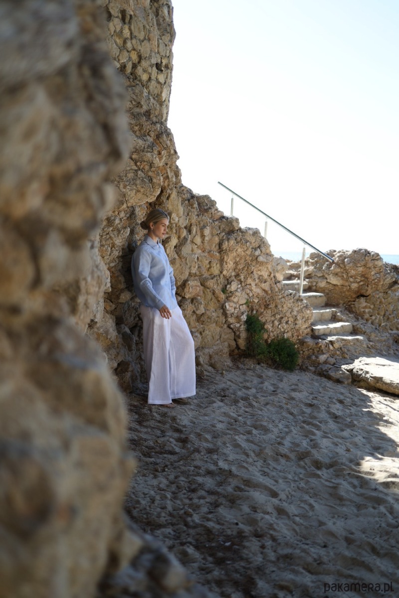 Frankie to lniane spodnie, które łączą wygodę z nonszalaną elegancją. Mają luźny, szeroki krój i są uszyte z wysokiej jakości lnu – lekkiego, oddychającego i idealnego na ciepłe dni.