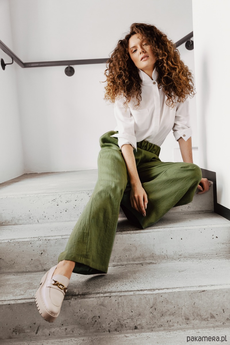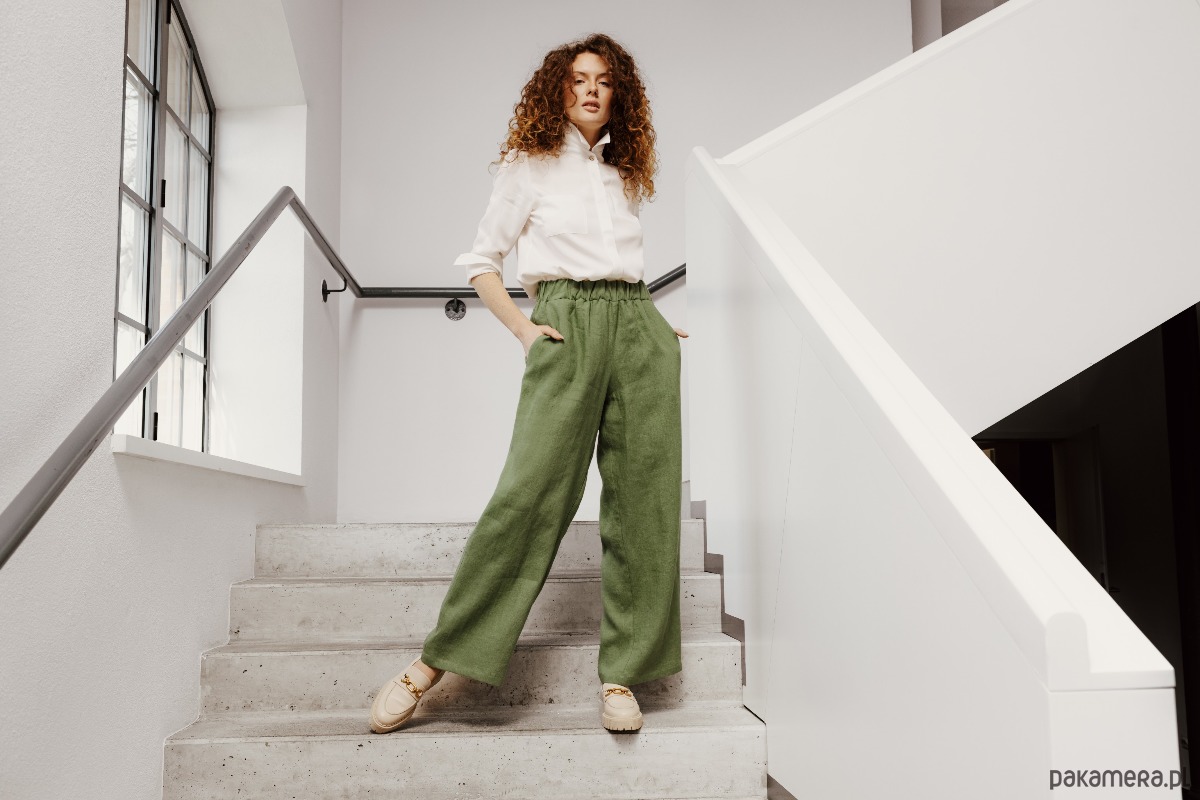Spodnie wykonane z tkaniny lnianej 100% w kolorze Avocado.