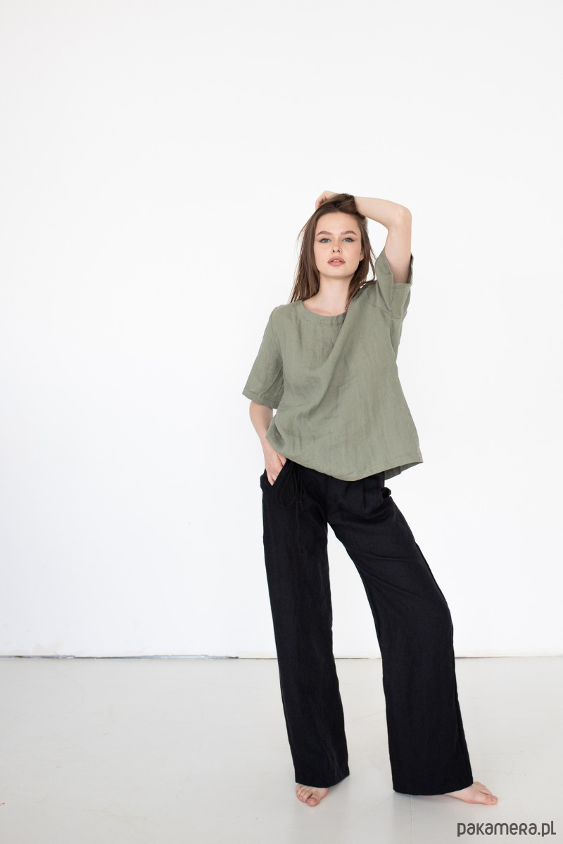 Zaufaj polskiej marce i postaw na zawsze modne lniane spodnie z szerokimi nogawkami.