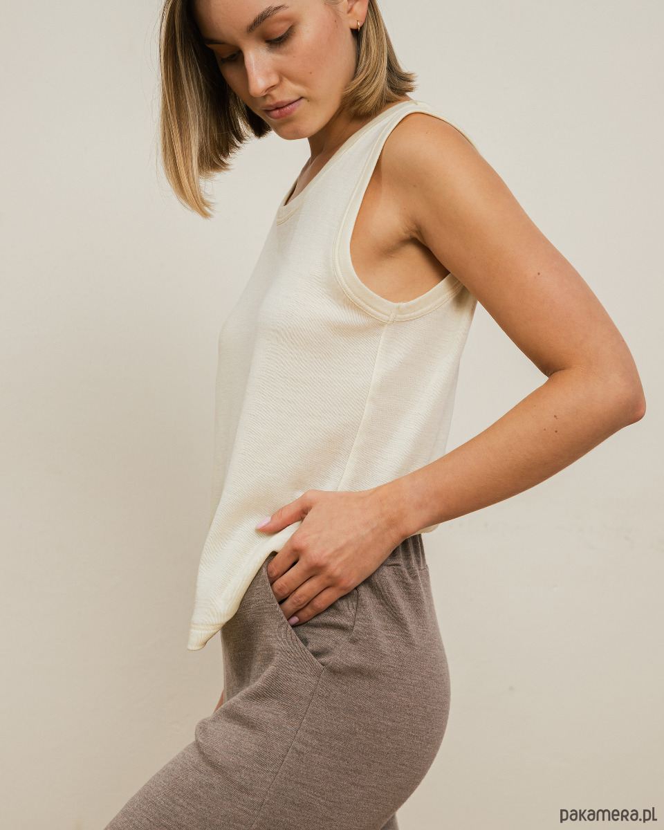 Spodnie o prostym, dopracowanym kroju z kieszeniami, uszyte z najwyższej jakości 100% wełny merino. Miękka, oddychająca i naturalna dzianina zapewnia wyjątkowy komfort termiczny i dopasowanie przez cały rok — idealne do noszenia na co dzień, w domu, w podróży, jak i podczas spokojnych aktywności na świeżym powietrzu. To funkcjonalna i świadoma propozycja, która łączy wygodę z minimalistycznym stylem.
