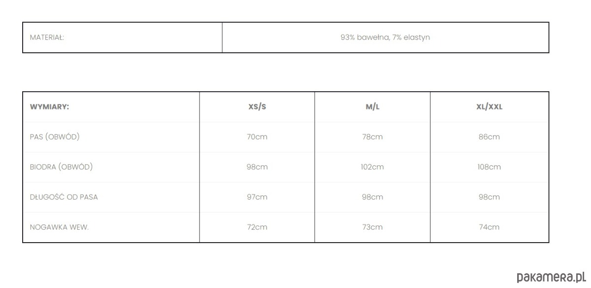 Materiał to bawełna z dość dużym dodatkiem elastynu, dzięki czemu spodnie doskonale dopasowują się do sylwetki.