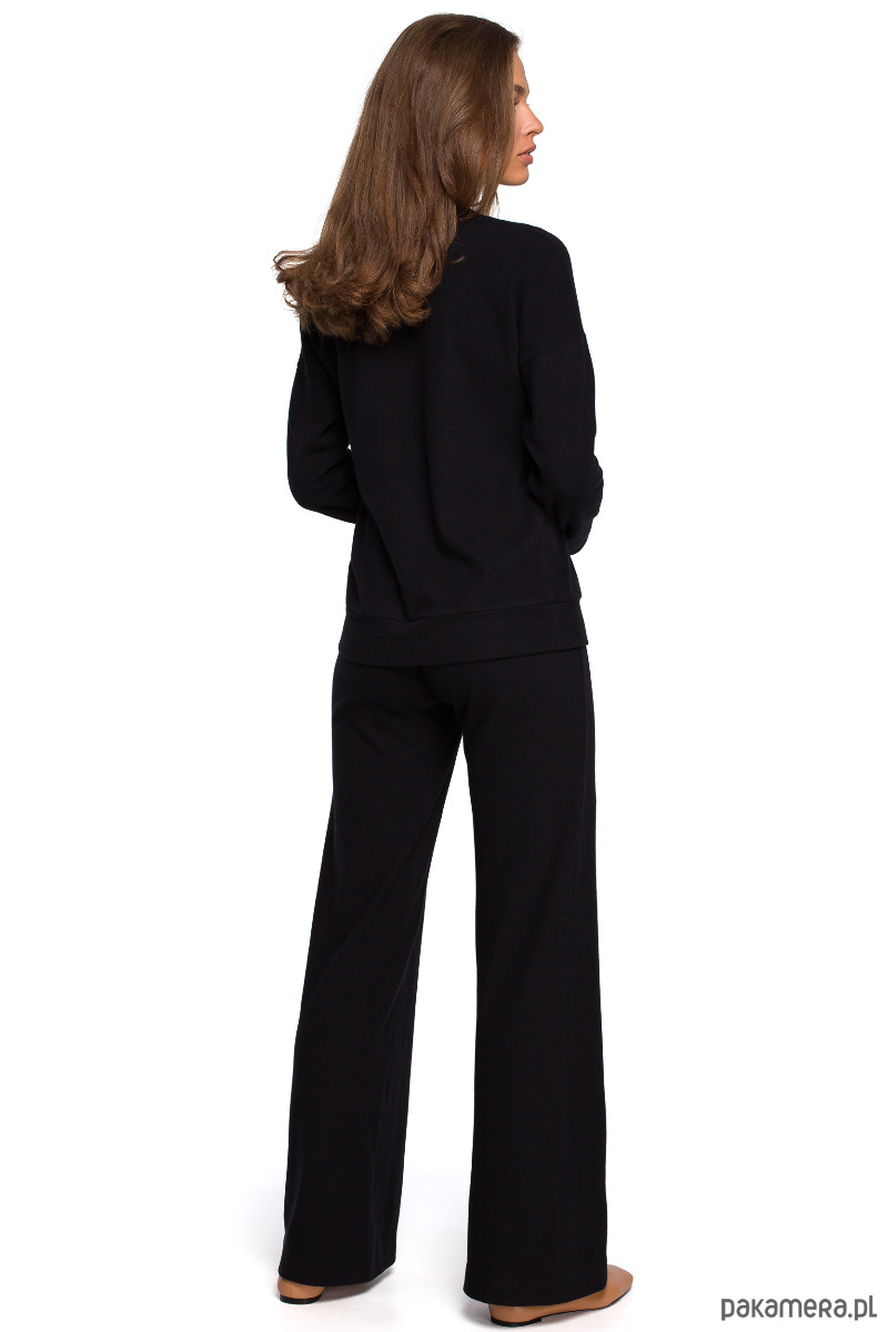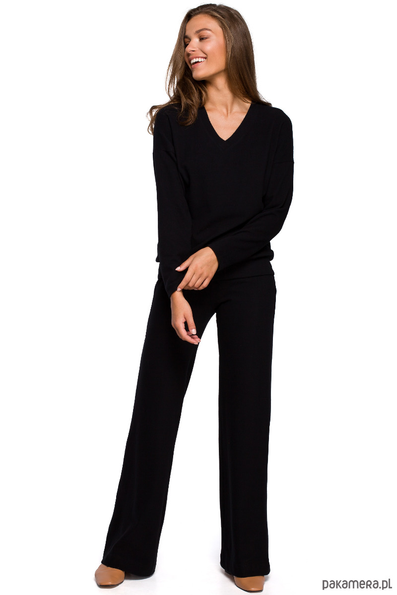 Wygodne i przyjemne w dotyku dzianinowe spodnie. W pasie na gumie, dzięki czemu można nosić je na dowolnej wysokości talii lub bioder. Idealnie sprawdzą się w komplecie z bluzką tego samego gatunku. Świetne rozwiązanie na co dzień.