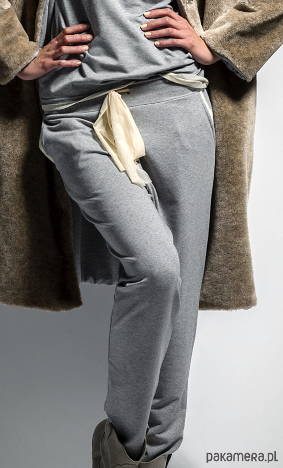 Spodnie uszyte z miękkiej, przyjemnej w noszeniu jakościowej bawełny. Z szerokim paskiem,
