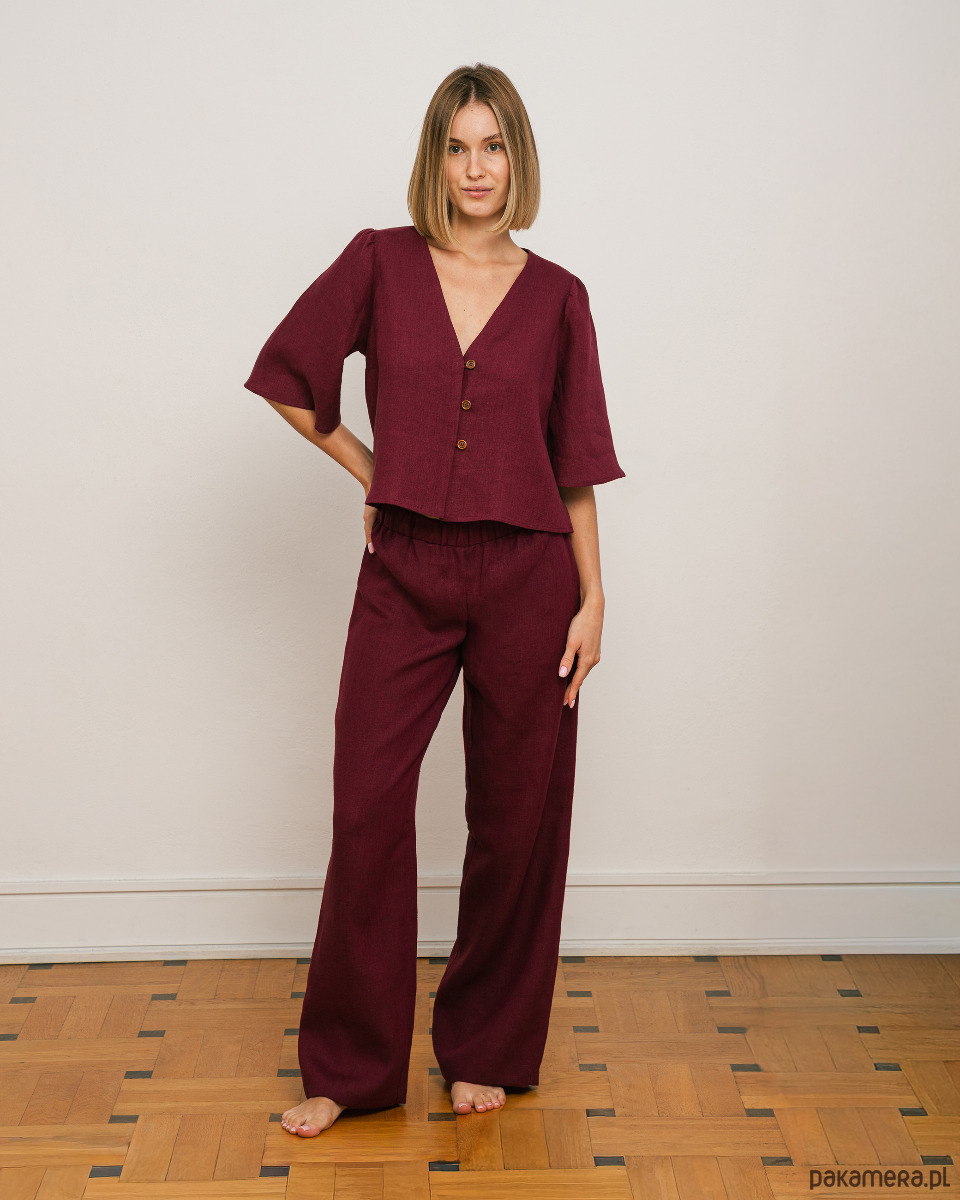 Spodnie NORA możesz połączyć z lnianą bluzką NEL lub NALA, tworząc harmonijny, komfortowy total look – idealny na ciepłe dni i nie tylko. To propozycja dla osób ceniących prostotę, trwałość i świadome wybory modowe.