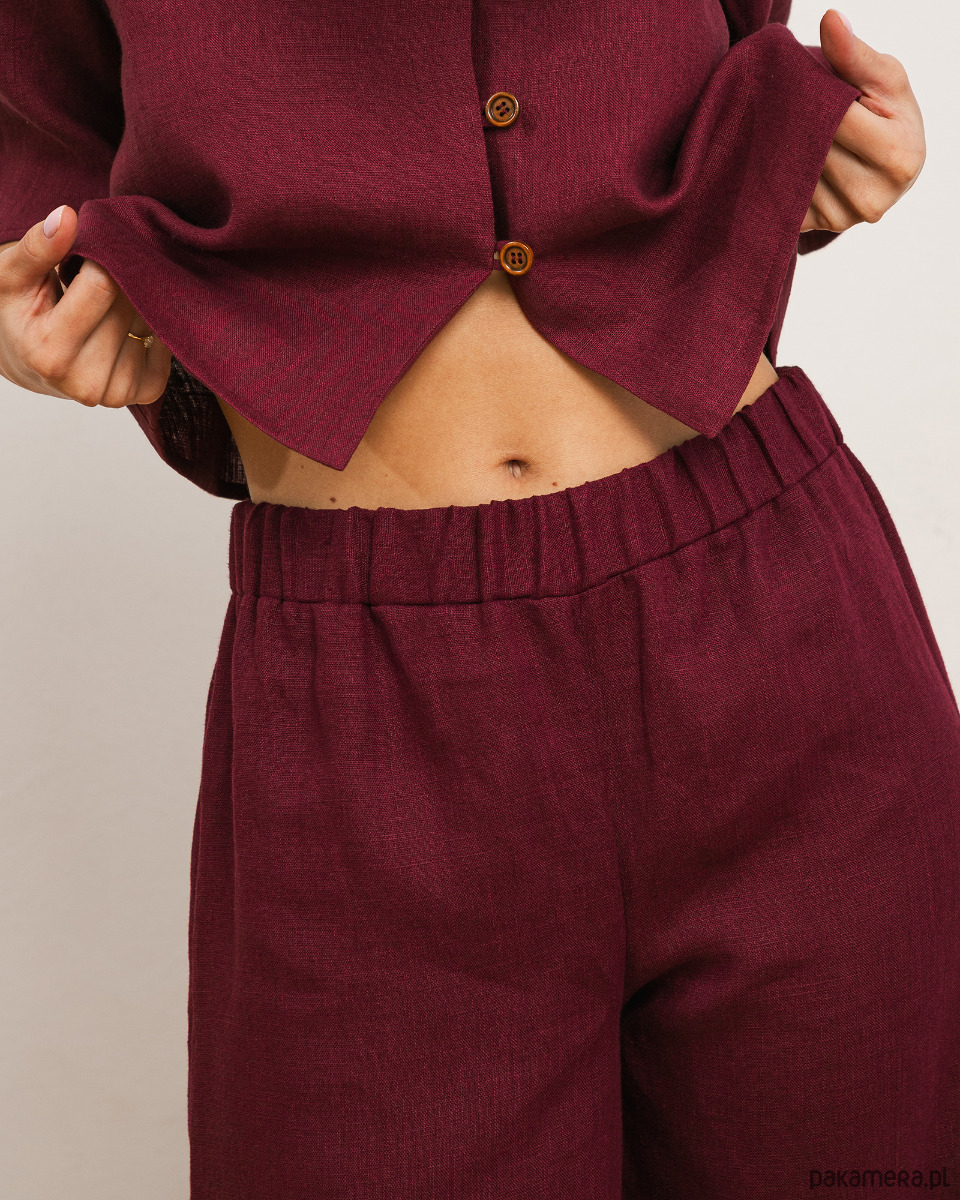 Spodnie lniane śliwkowe