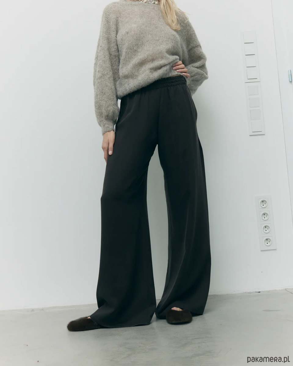 Spodnie Palazzo Chocolate z tencelu premium to idealne połączenie swobody, wygody i nowoczesnej elegancji. Tencel – włókno roślinne pozyskiwane w zrównoważony sposób – zachwyca miękkością, oddychalnością i delikatnym, jedwabistym chwytem. Dzięki temu spodnie są niezwykle komfortowe, lekkie i przyjemne w dotyku, a przy tym trwałe i odporne na odkształcenia.