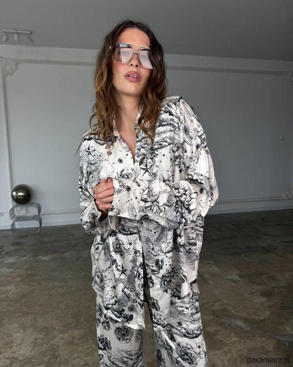 Print przełamuje minimalizm i dodaje stylizacji charakteru, zachowując jednocześnie elegancję i nowoczesność.
