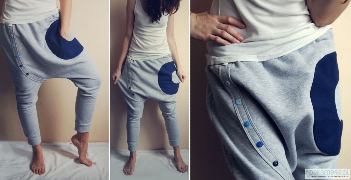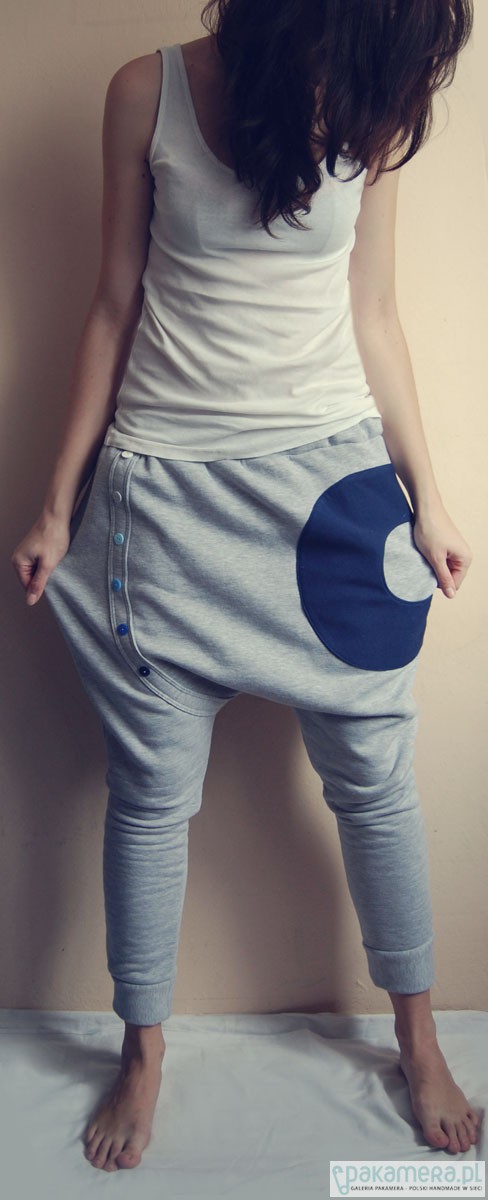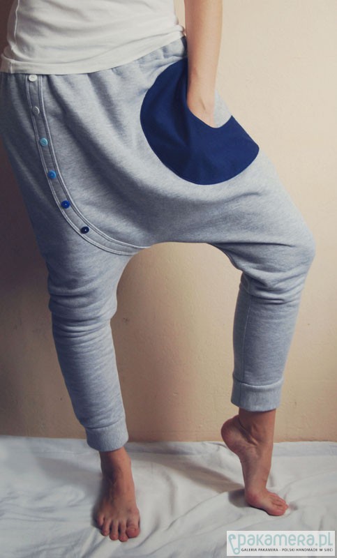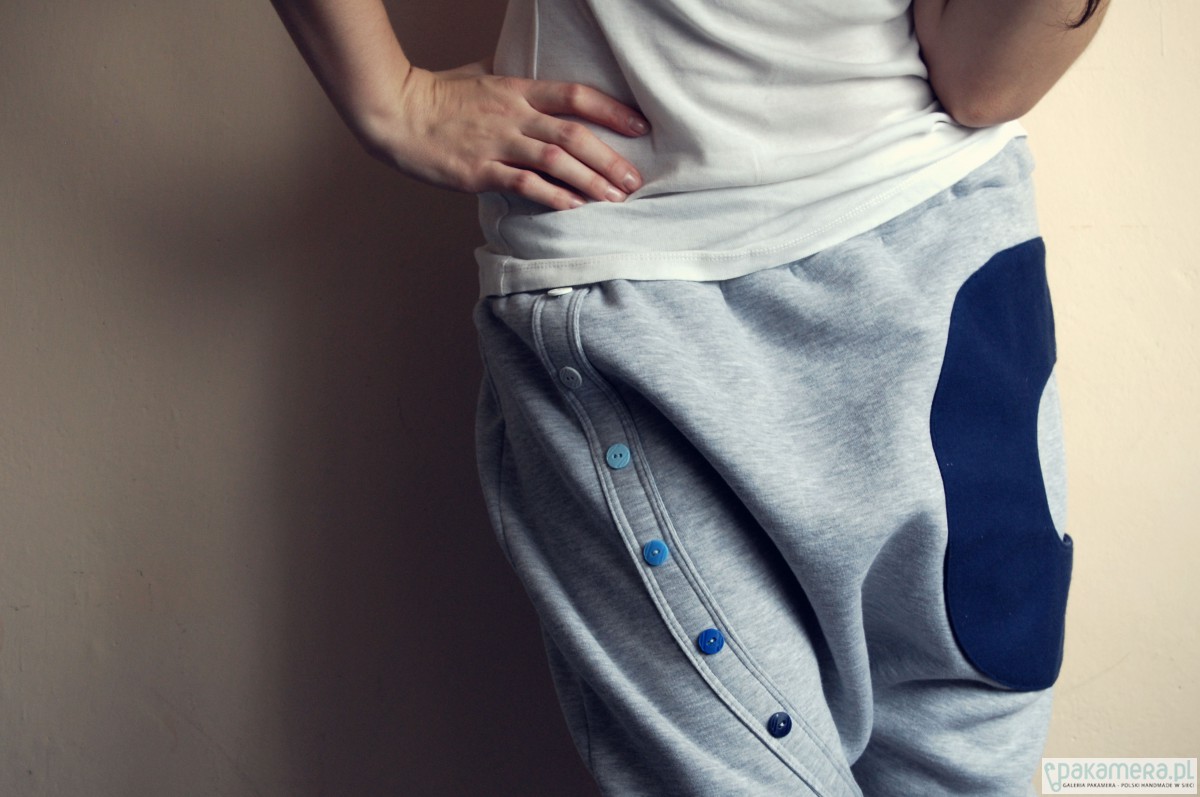 dresowe spodnie z jesienno-zimowych zasobów "agagu". Uszyte z cieplutkiej, grubej dzianiny w wewnątrz dodatkowo ocieplonej białym "misiem" (skład dzianiny 92%bawełna 8%poliester) trwałe, milutkie w dotyku, solidnie wykończone ściągaczami. Ozdobione okrągłą kieszenią oraz imitacją rozporka z guzikami w dowolnej skali barwnej. Baaardzo wygodne:)