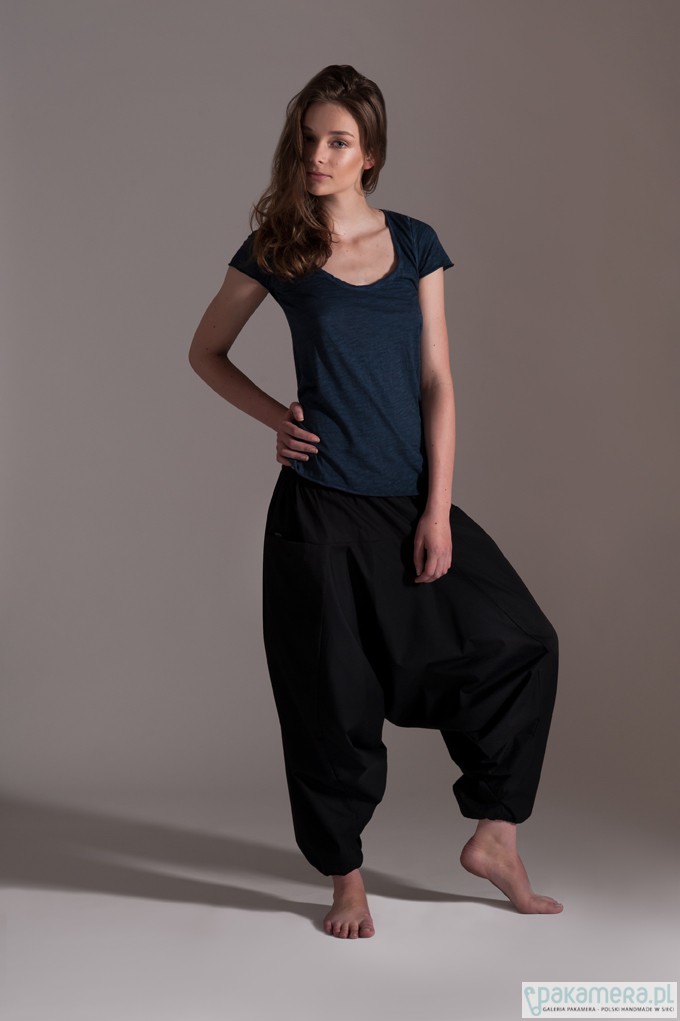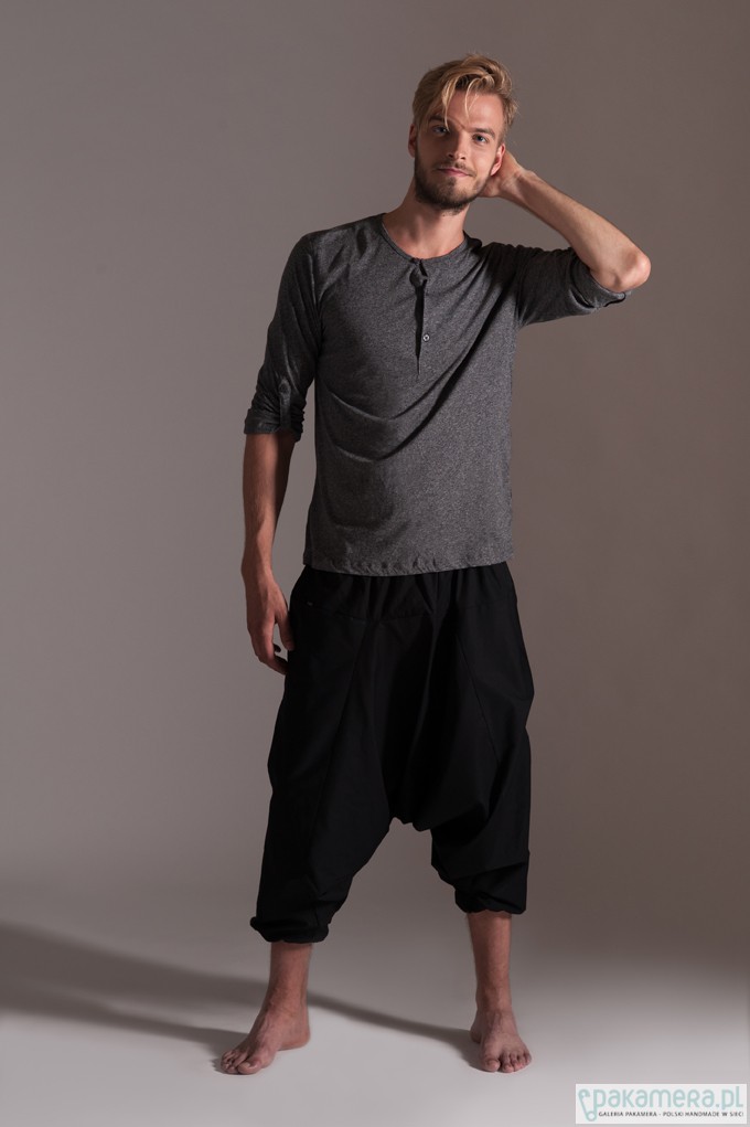 Szarawary unisex z kieszonką uszyte z bawełny organicznej z certfikatem GOTS. W jednym, uniwersalnym rozmiarze dla dorosłych osób o różnej posturze. Wymyślone w Indiach, uszyte w Polsce. Wzrost Darii: 172 cm Wzrost Gabriela: 189 cm Skład: 100% organiczna bawełna