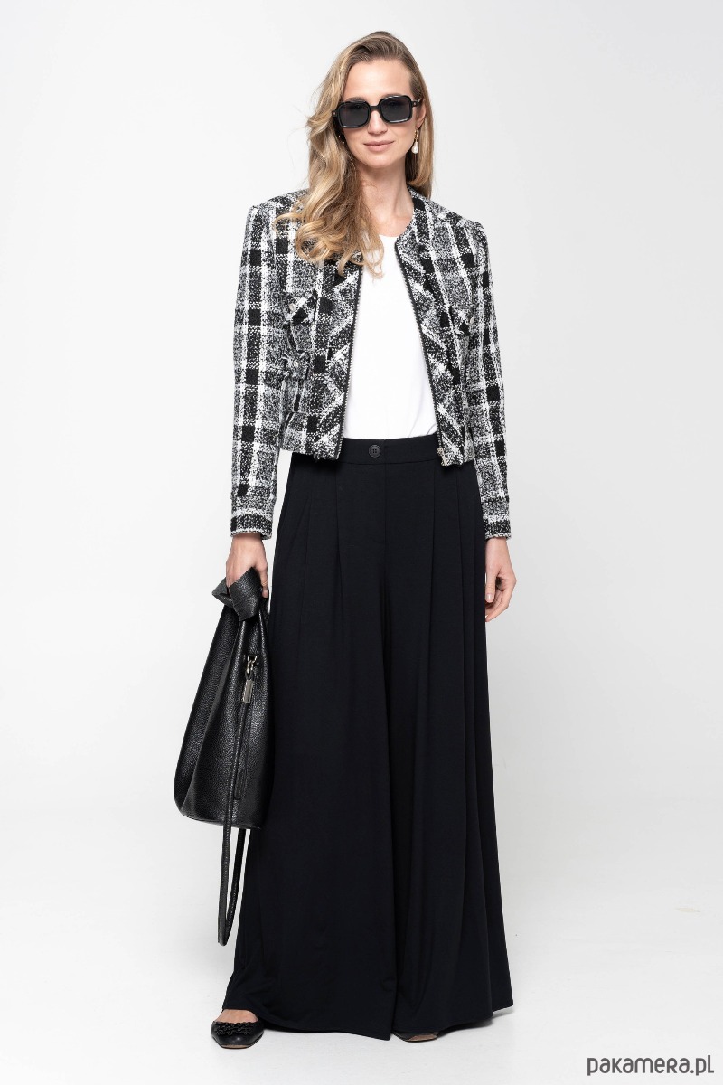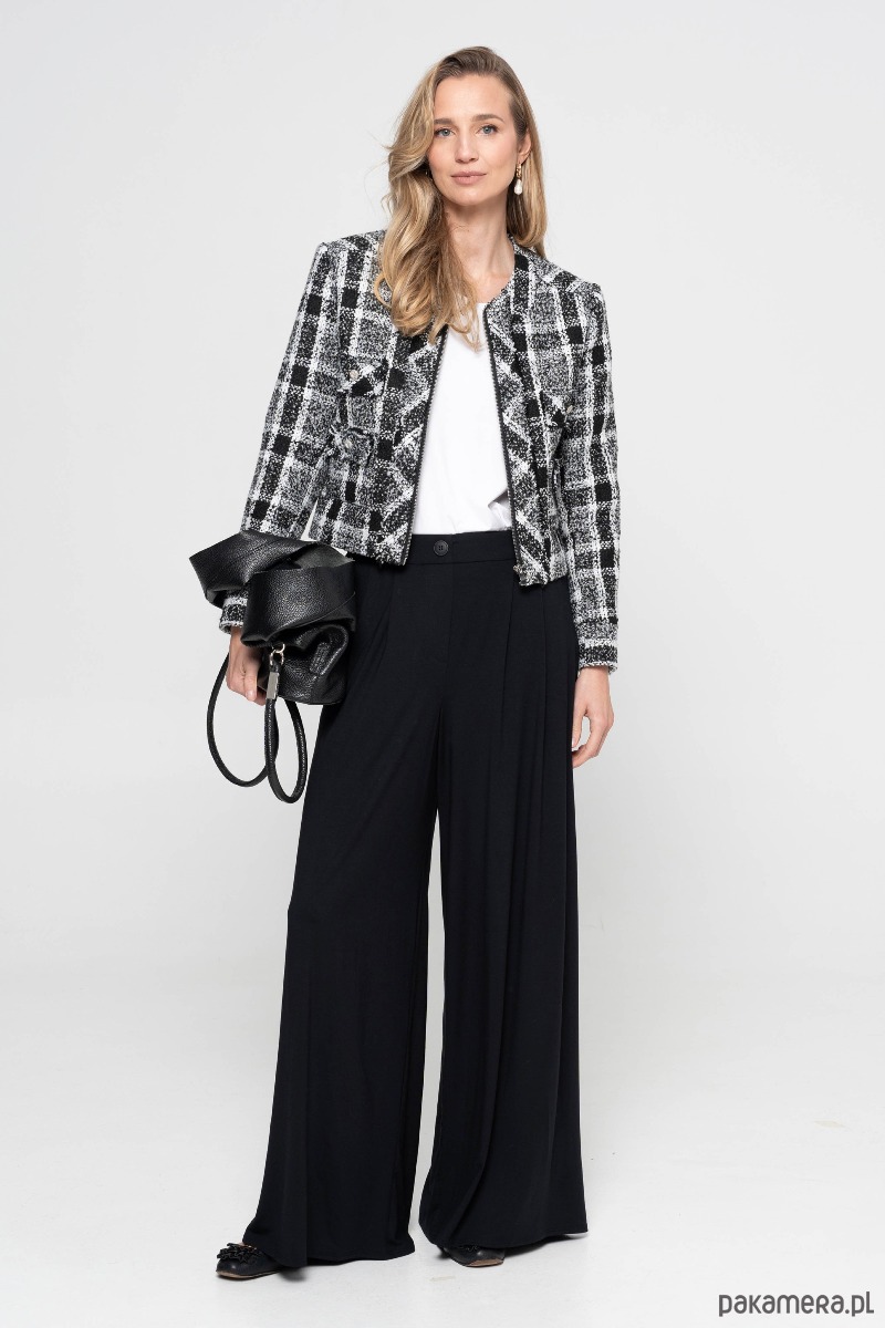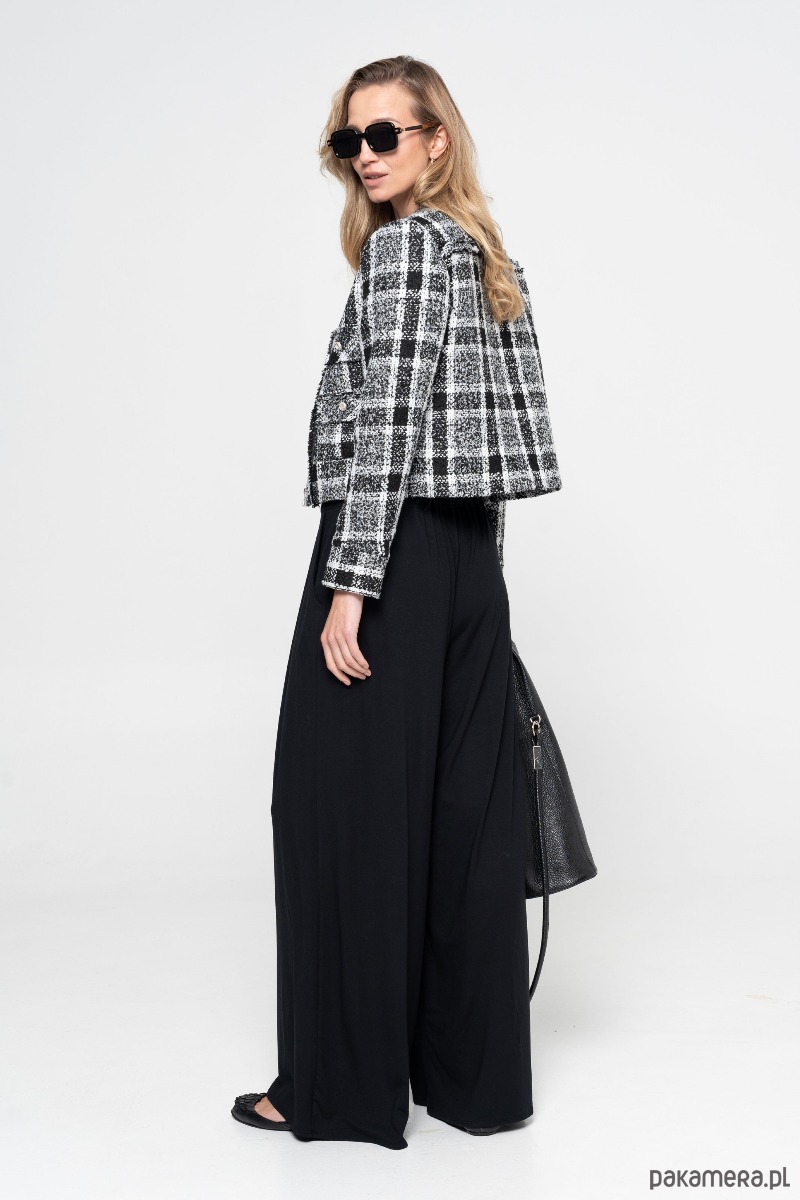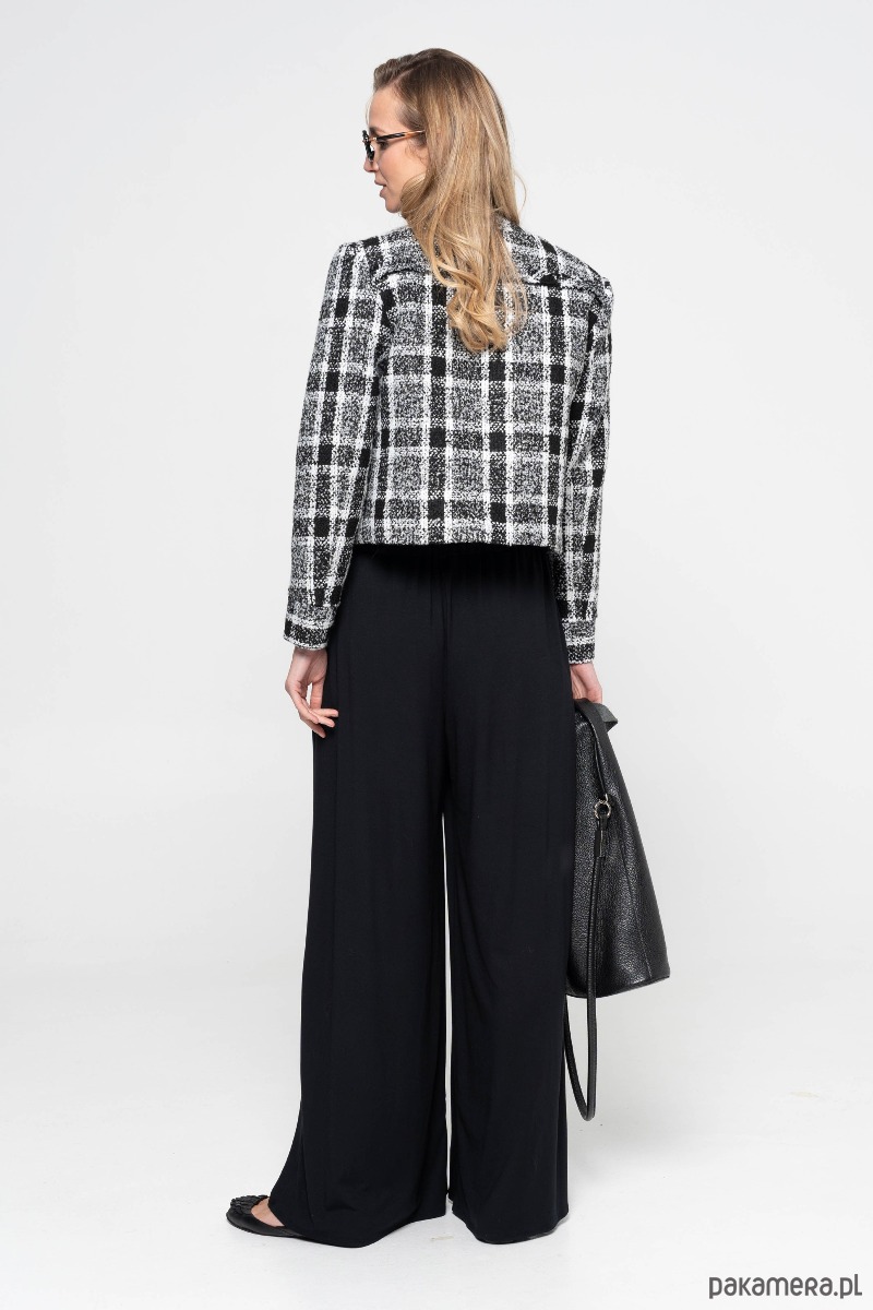 Szerokie spodnie z kieszeniami. Guma w pasie zapewnia duży komfort noszenia. Nogawka bardzo szeroka, przez co spodnie się nie opinają i są bardzo wygodne. Fason bardzo uniwersalny dobrze leży na różnych typach sylwetki.