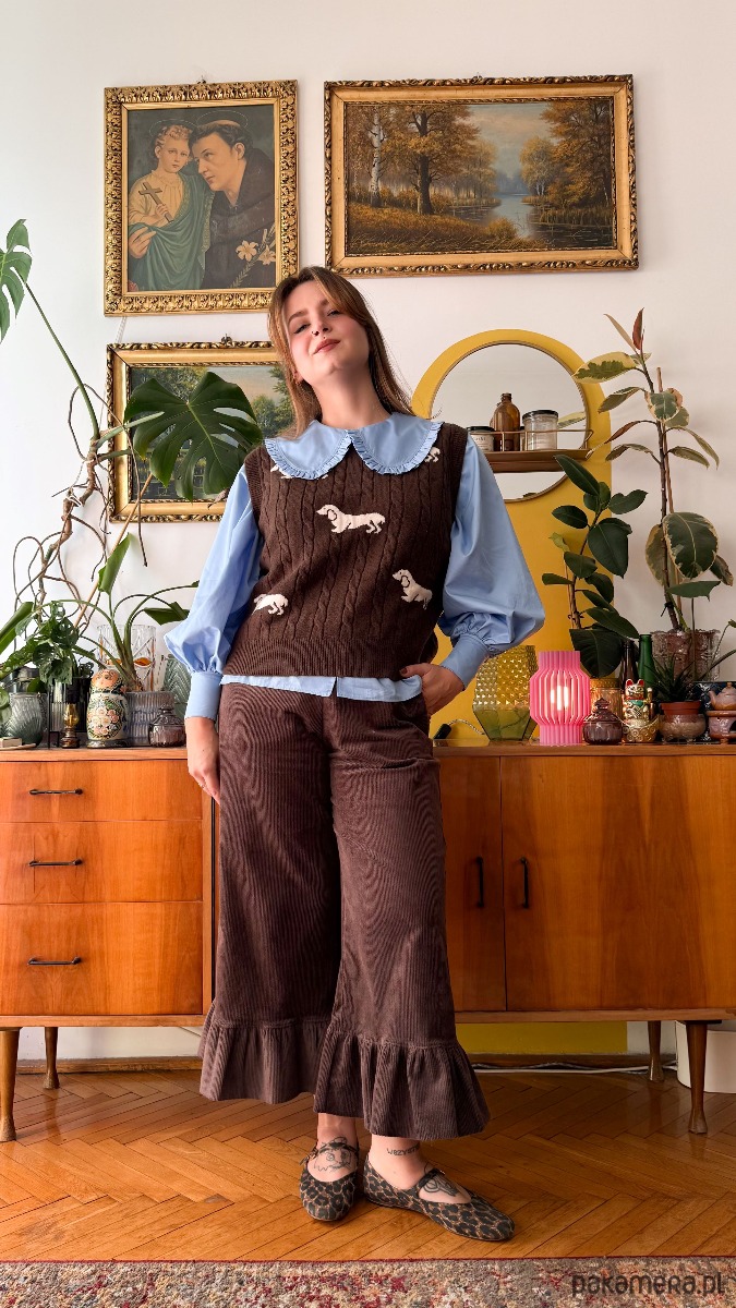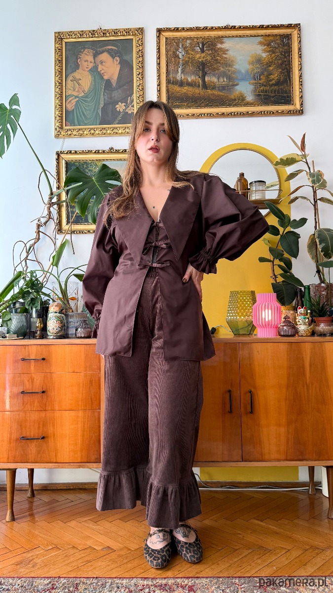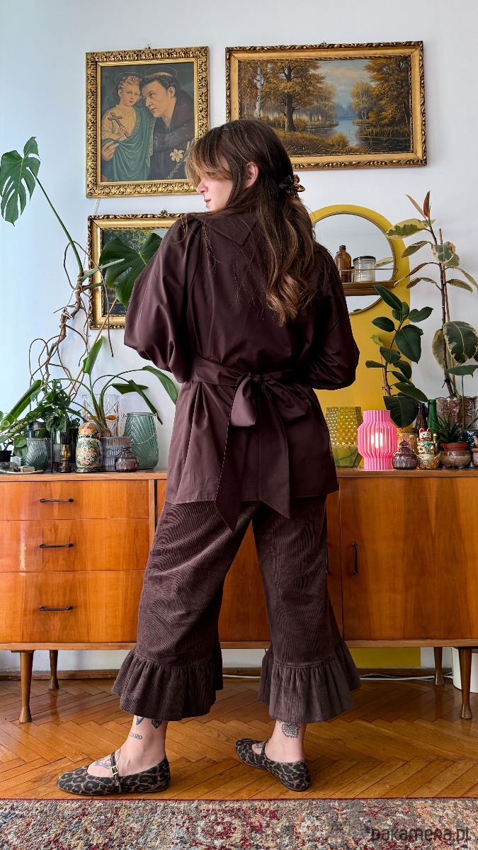 Po trzecie uniwersalność! To takie spodnie, które po prostu zakładasz z czymkolwiek-świetnie sprawdzają się w komplecie z koszulą, ale stworzą też super duet z t-shirtem, marynarką, kamizelką, czy bluzą. Do noszenia zarówno na sportowo, jak i nieco bardziej elegancko-wyobraź je sobie np. z balerinkami, albo kozakami! Tym razem postawiłam jeden z najgorętszych kolorów tego sezonu czyli ciemny brąz. Zatem, jeśli cenisz sobie wygodę, to totalnie opcja dla Ciebie!