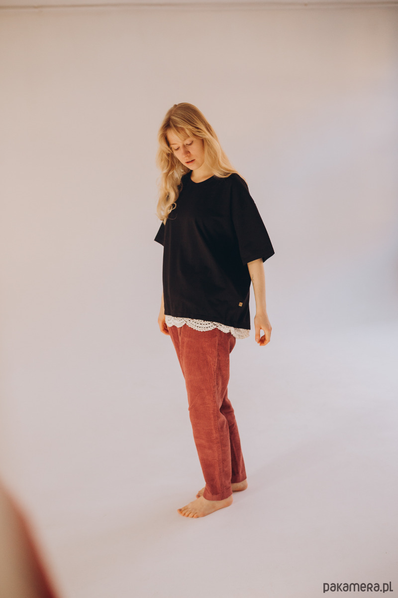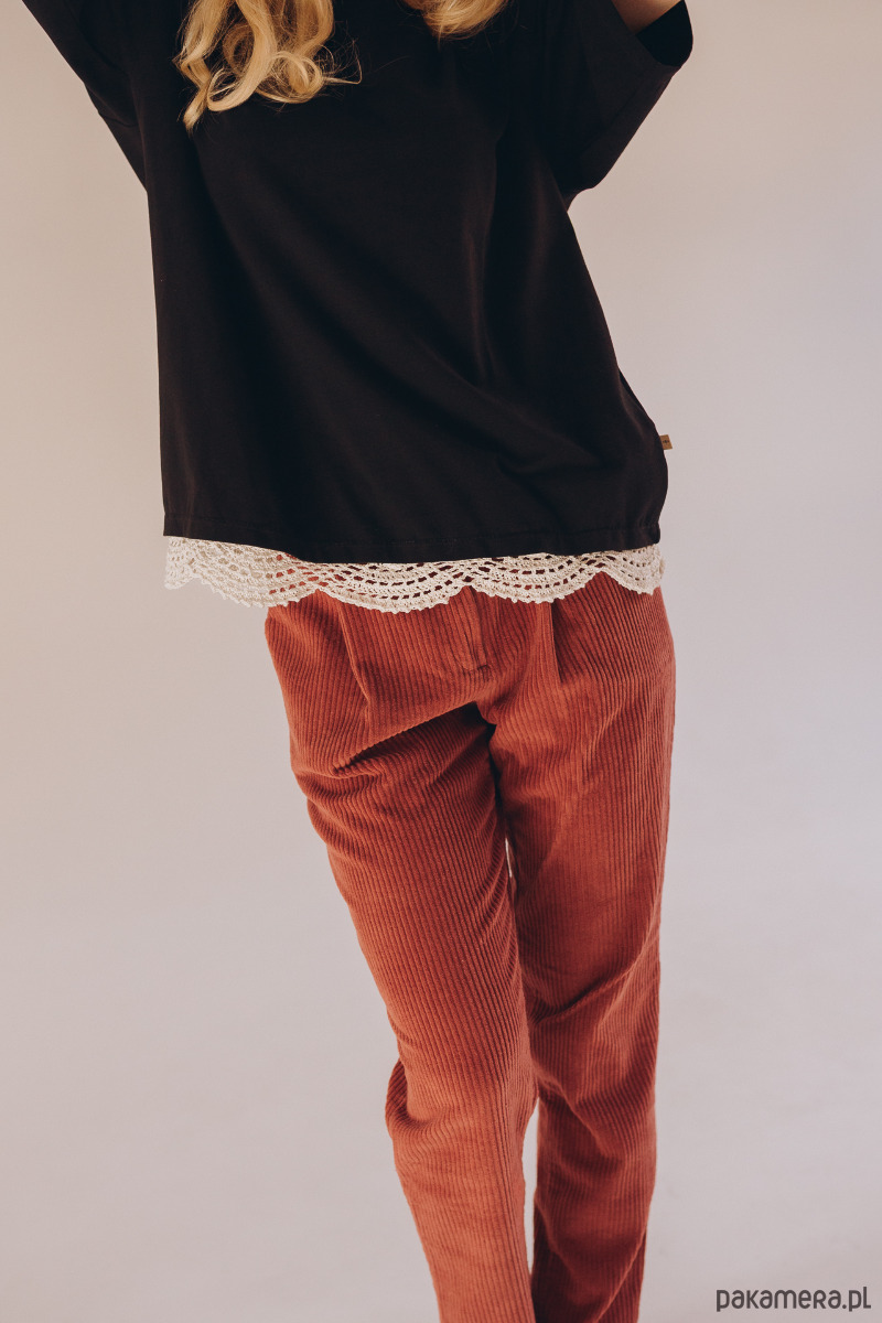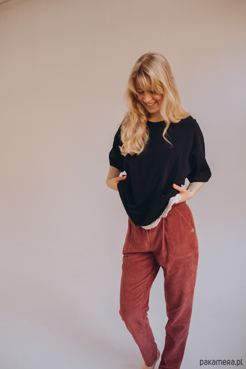 Spodnie Totally łączą w sobie funkcjonalność jeansów i wygodę muślinu. Uszyte z miękkiego, ale trwałego sztruksu, mają swobodny krój z lekko zwężanymi nogawkami. Dodatkowo wyposażone są w listwę, która pozwala regulować ich długość, dopasowując je do każdej stylizacji. Duże kieszenie pomieszczą wszystko, co potrzebne – zapomnisz o wypadającym telefonie. Idealnie pasują do koszuli Totally.