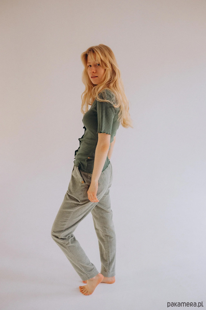 Wielozadaniowe jak jeansy i wygodne jak muślin? Takie właśnie są Totally, które uszyliśmy z miękkiego, a zarazem wytrzymałego sztruksu. Mają swobodny krój i zwężane ku dołowi nogawki. Wykończyliśmy je listwą, dzięki której możesz łatwo regulować ich długość tak, żeby pasowała do każdej stylizacji. Totally mają też spore kieszenie, dzięki którym zapomnisz o wiecznie wypadającym telefonie. Stworzą zgraną parę z koszulą o tej samej nazwie.