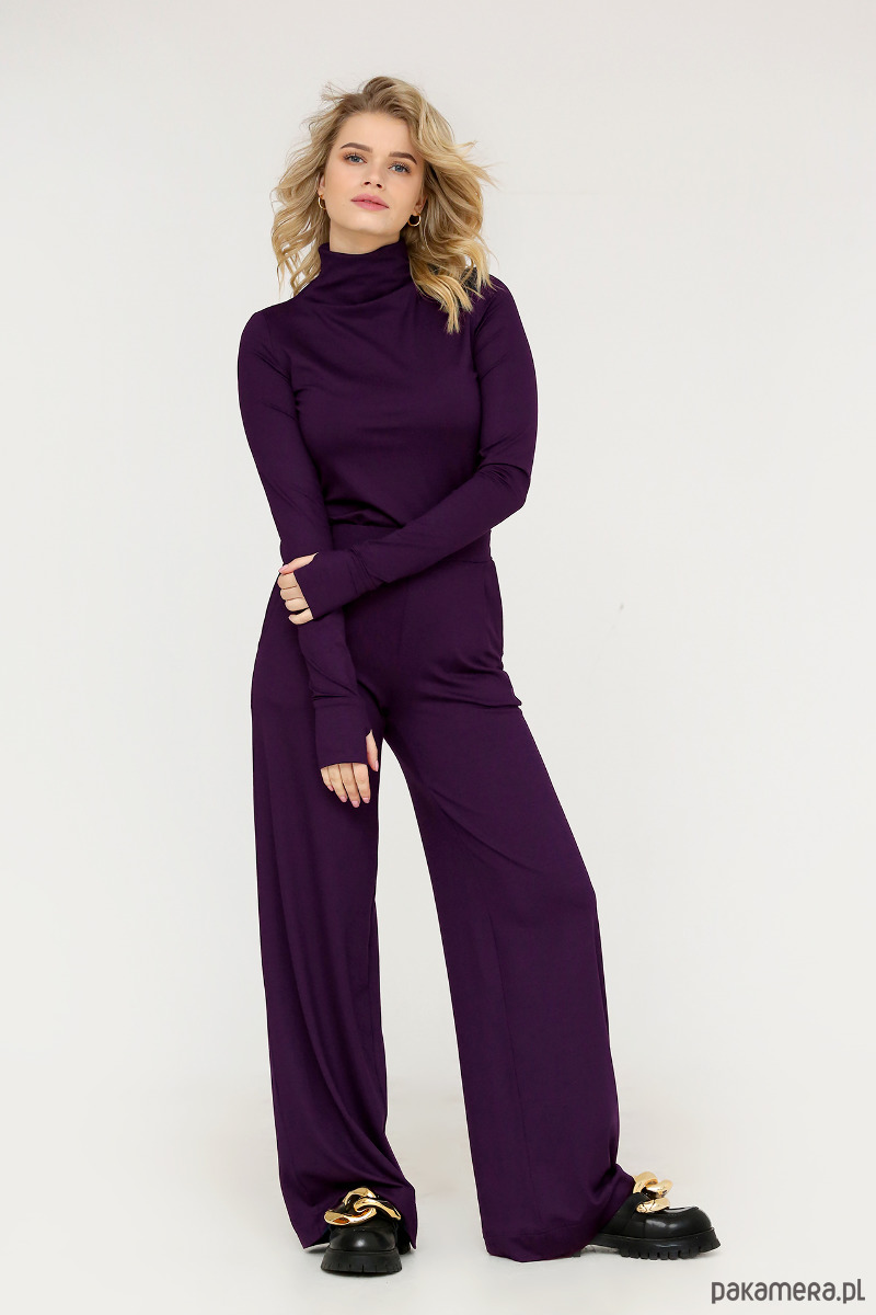 Długość całkowita: 105 cm. Do spodni polecamy golf w tym samym kolorze i z tej samej tkaniny.