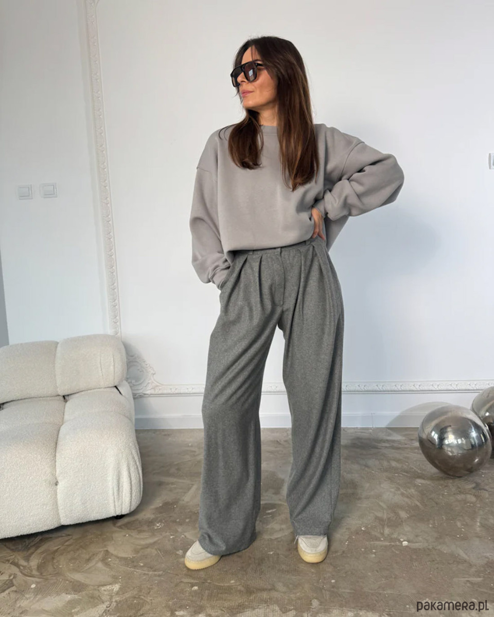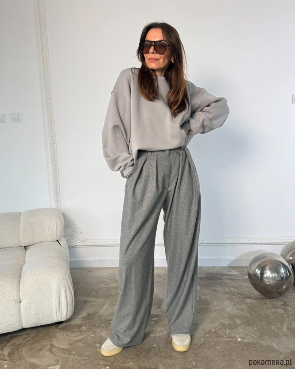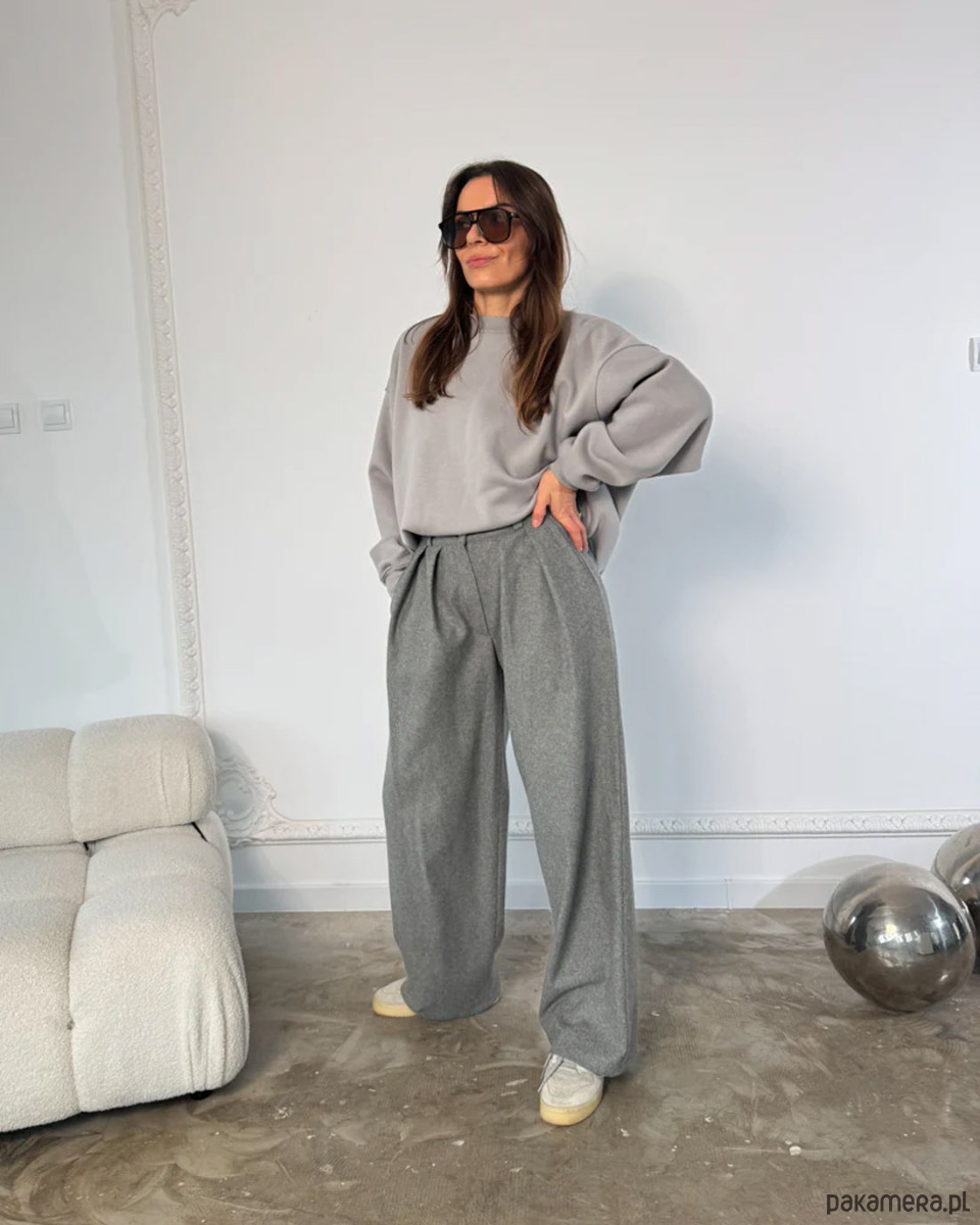 Spodnie Muse Grey Melange to połączenie ponadczasowej klasyki i nowoczesnej elegancji w duchu slow fashion. Zaprojektowane z myślą o kobietach, które cenią jakość, wygodę i minimalistyczny styl.