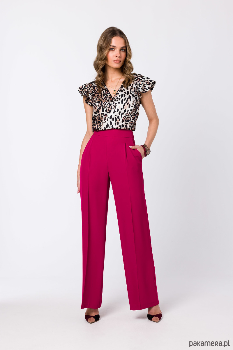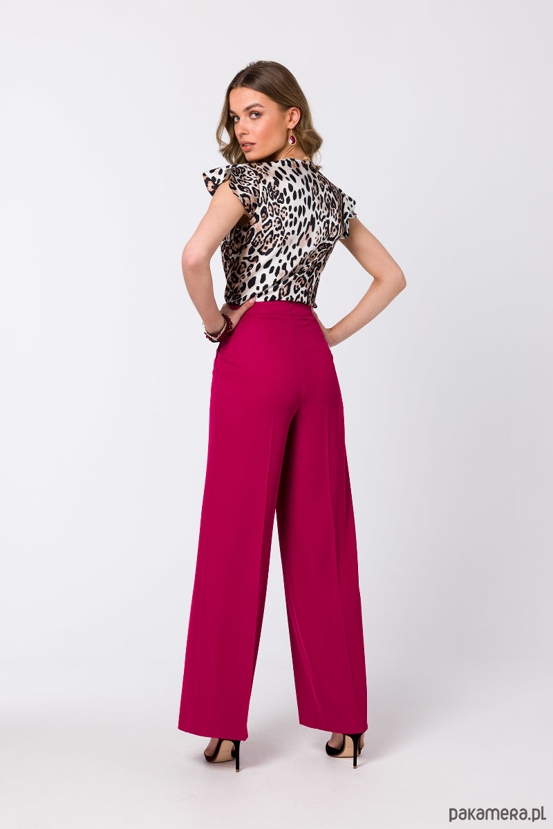 Spodnie z szerokimi nogawkami i modelującymi zaszewkami w talii - szykowne i eleganckie.