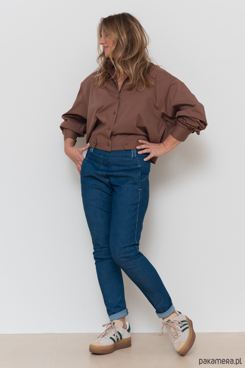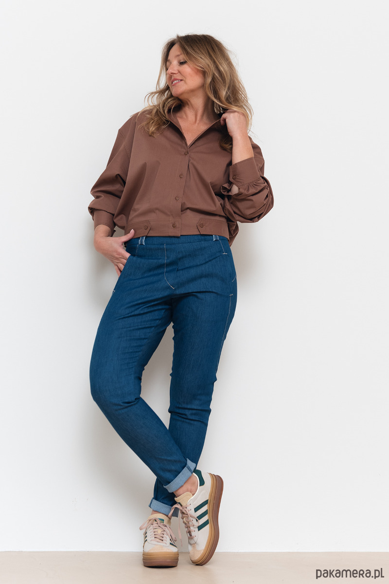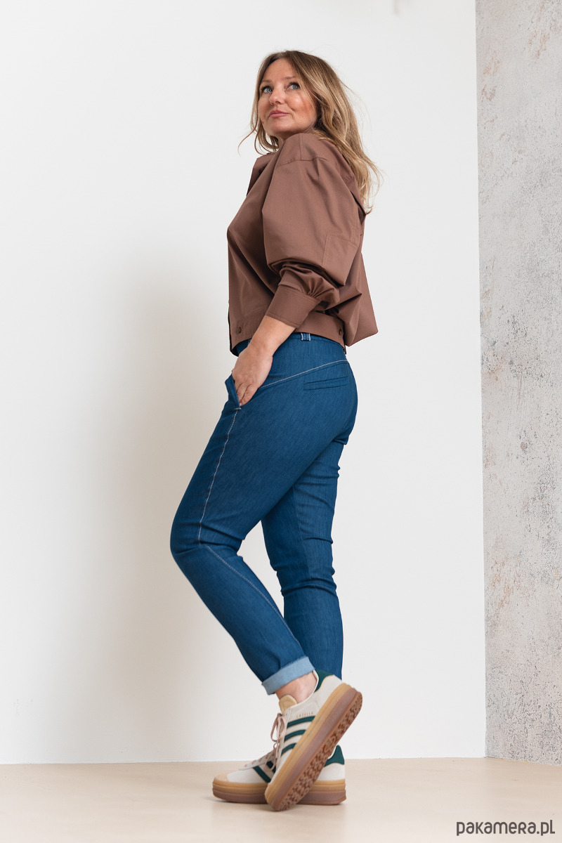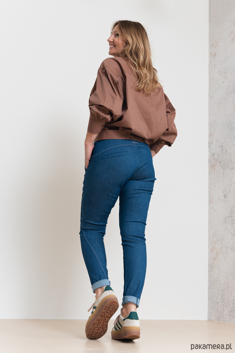 Zwężane, zakręcone nogawki i zaokrąglony karczek idealnie podkreślają sylwetkę, a efekt "lift up" subtelnie modeluje kształty.